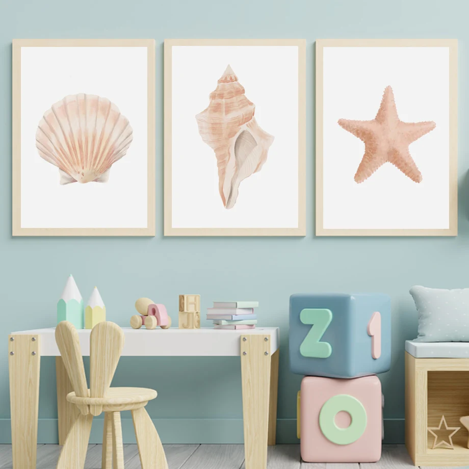 Ракушка, Коралловый лобстер, краб, морская звезда, бегемот, настенная Картина на холсте, скандинавские постеры и принты, настенные картины, декор для детской комнаты