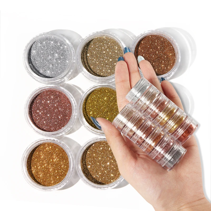6 цветовНабор для дизайна ногтей Кристальный алмазный порошок блестящая краска Блестящий золотистый Серебристый пылезащитный аксессуар для самостоятельного маникюра