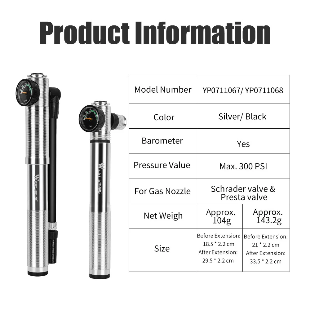 Портативный велосипедный мини-насос WEST BIKING 89G, насос для горн...