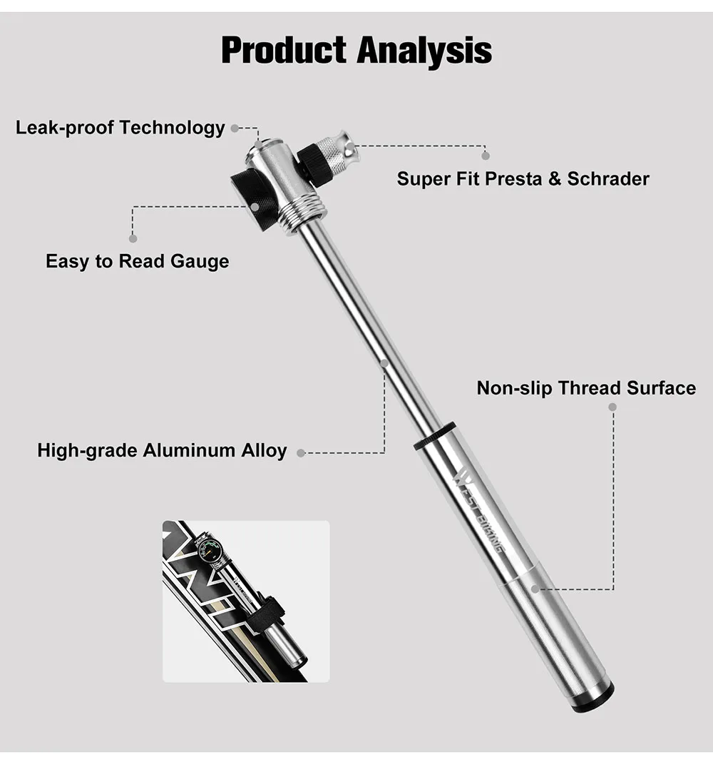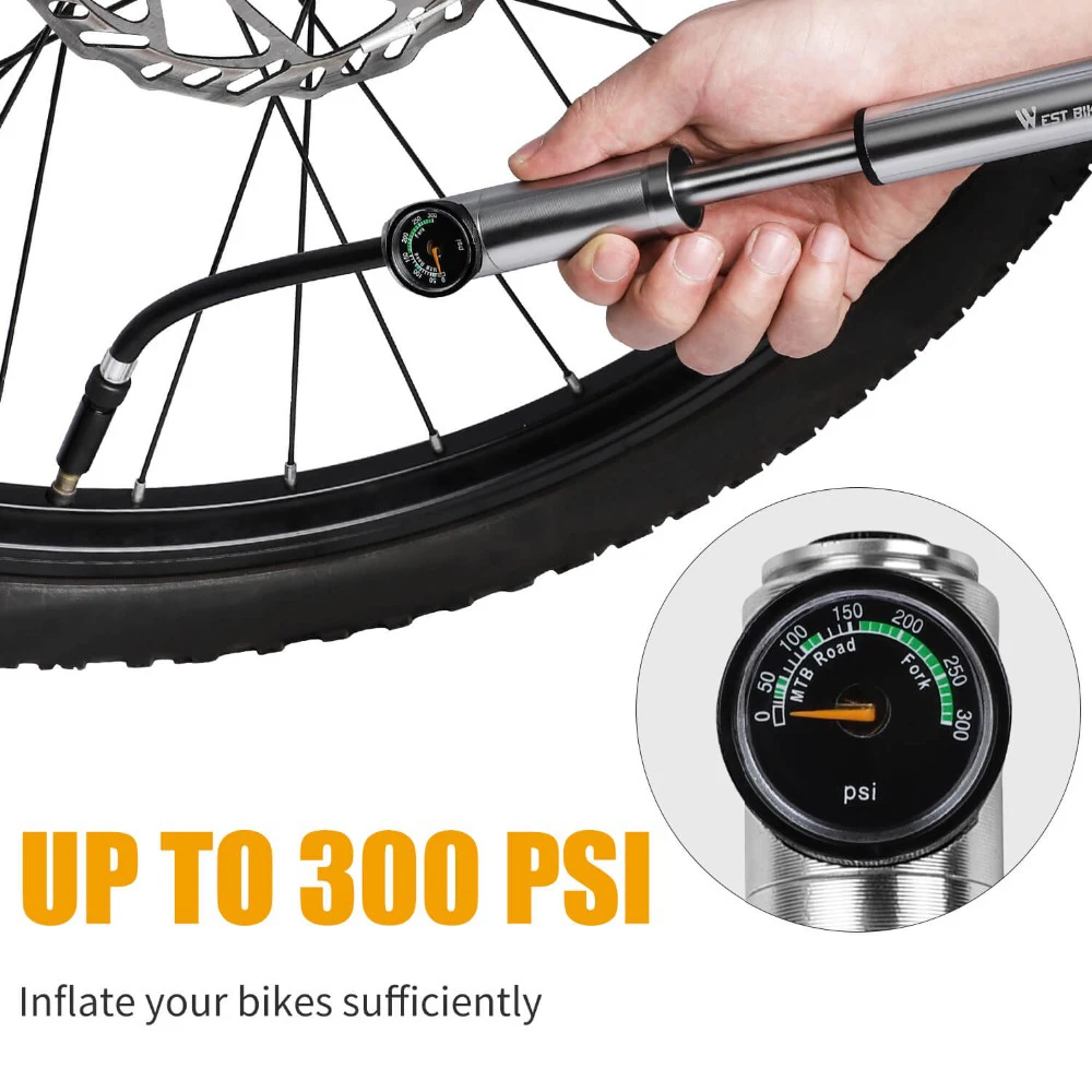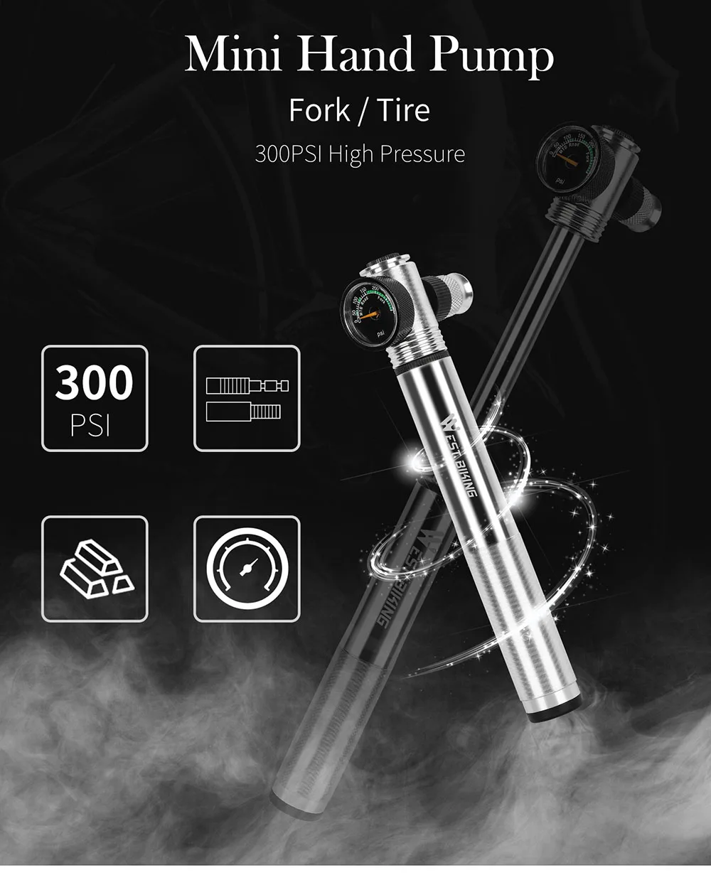 Насос велосипедный WEST BIKING, шланг с манометром фунтов на квадратный дюйм, для вилочной задней подвески