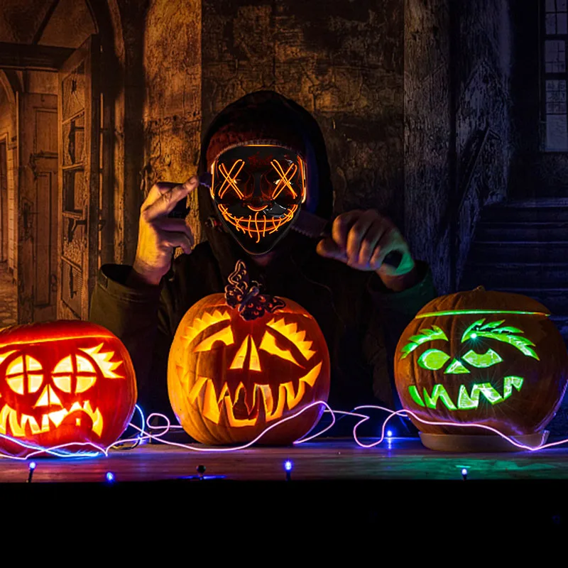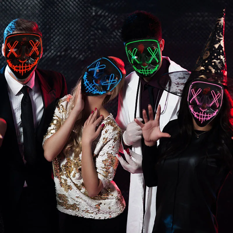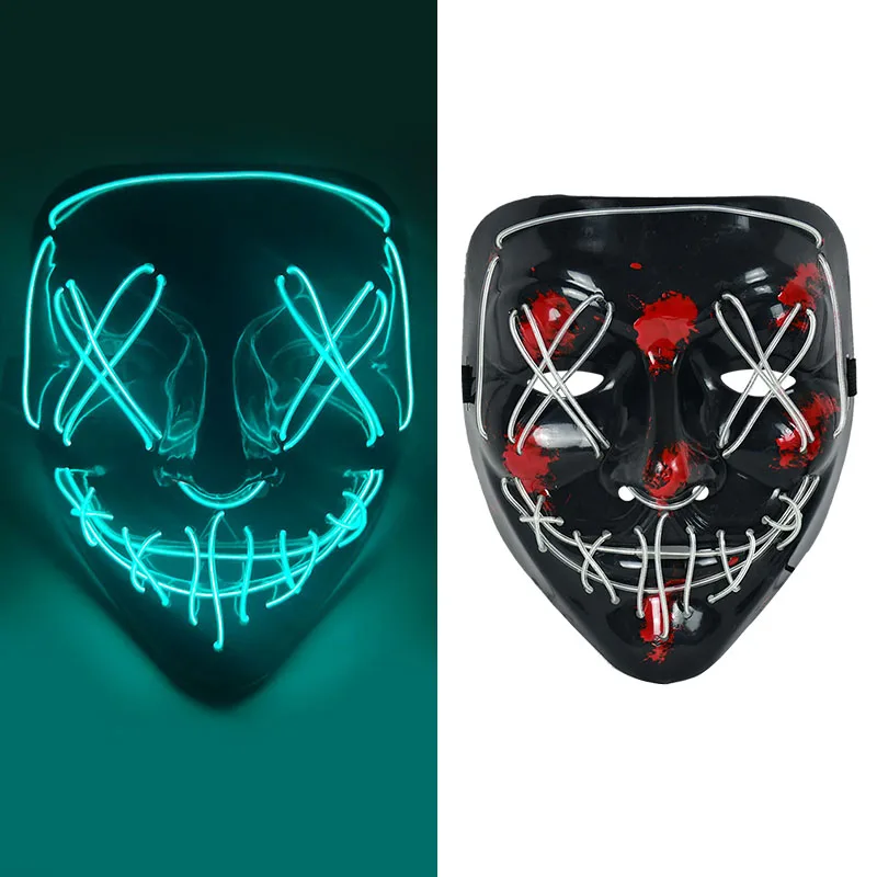 Разноцветная крутая светодиодная маска, украшение для Хэллоуина, маскарадные светящиеся товары для вечеринок, неоновая фотография, страшная маска