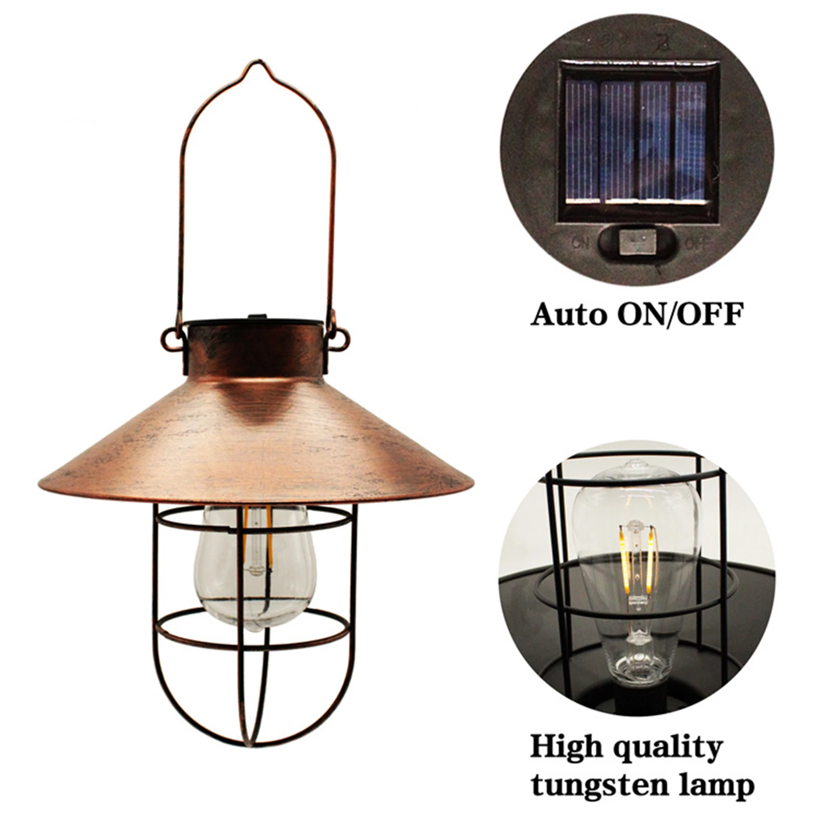 Солнечный фонарь лампа открытый подвесной водонепроницаемый винтажный металлический Солнечный фонарь для сада с вольфрамовой лампой декоративный для патио заднего двора