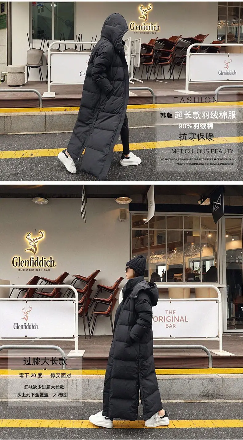 Пуховая парка, сверхдлинная куртка, женская зимняя куртка до колена, женское толстое черное пальто для зимы