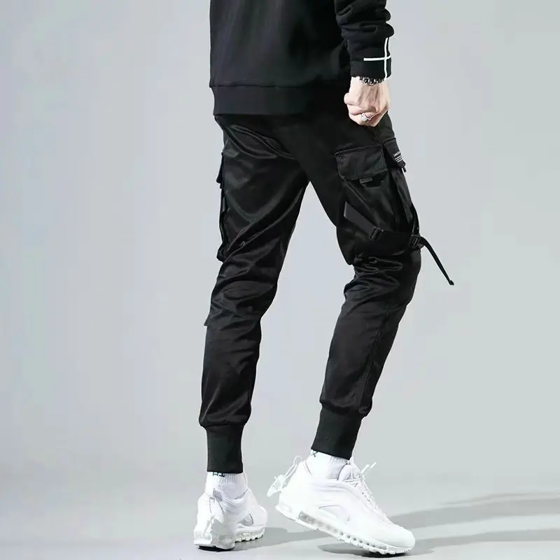 Брюки-карго мужские, черные, с боковыми карманами, в стиле хип-хоп