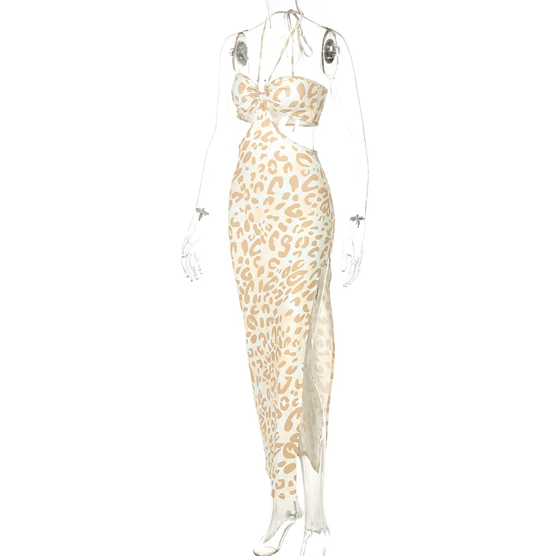 Женское платье-халтер с леопардовым принтом и высос разрезом м, лето 2021