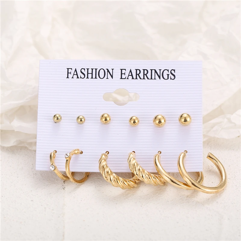 2021 новые модные золотые серьги-гвоздики из сплава с шариками для женщин винтажные классические круглые серьги 6 паркомпл. с отделением для карт