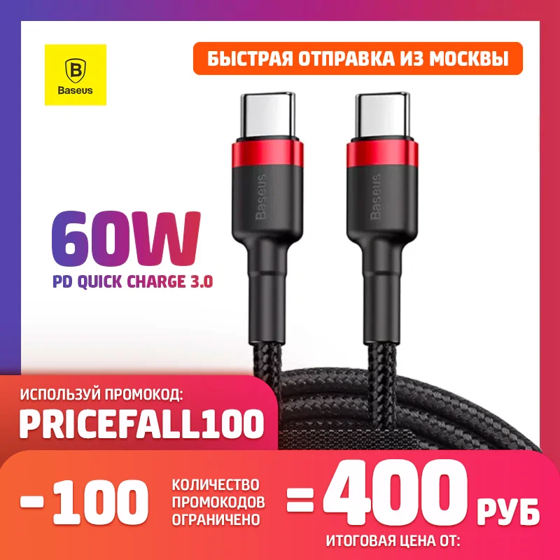 Кабель Baseus usb-cUSB Type-C, 100 Вт, для Macbook, iPad, 60 Вт, US...