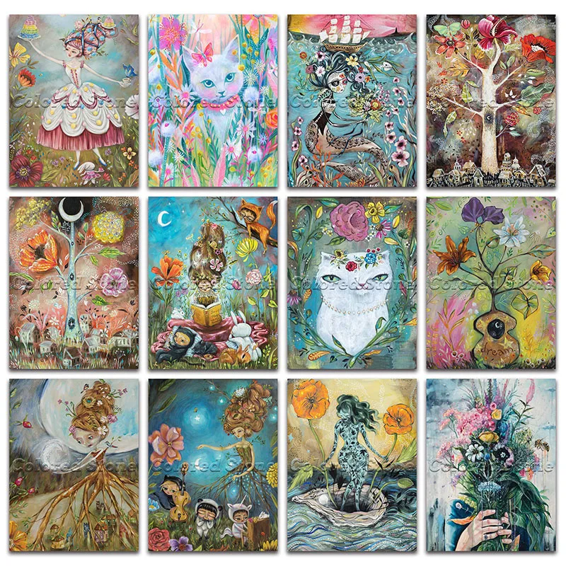 Алмазная живопись, мультяшная девушка, цветок, кот, Гоблин 5D, сделай сам, полная выкладка, вышивка крестиком, Круглая Мозаика, рисование 1139