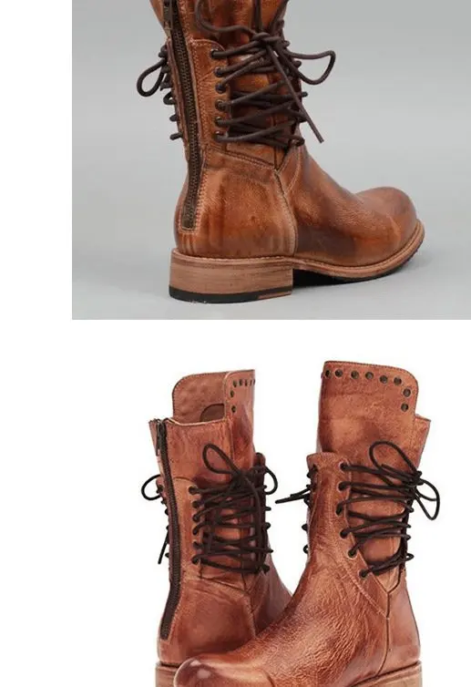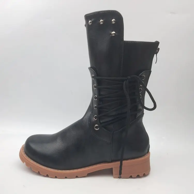 Женские ботинки до середины икры, с заклепками, на квадратном каблуке