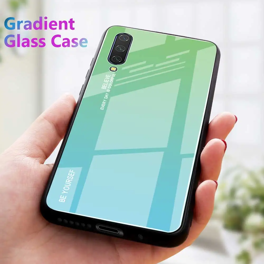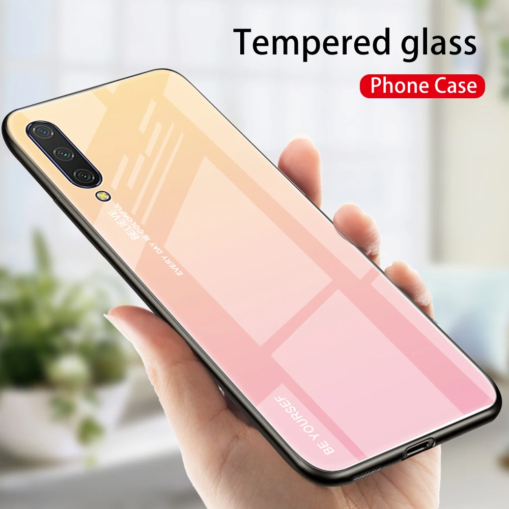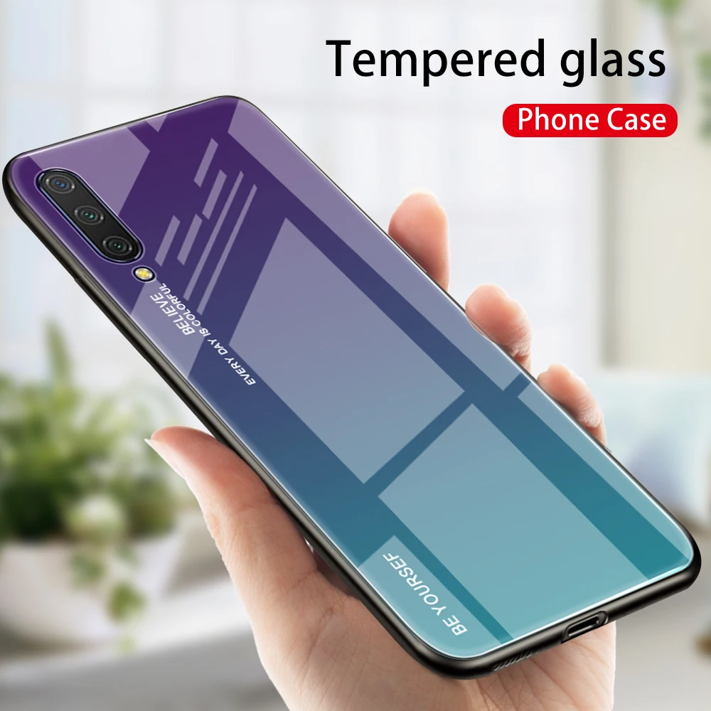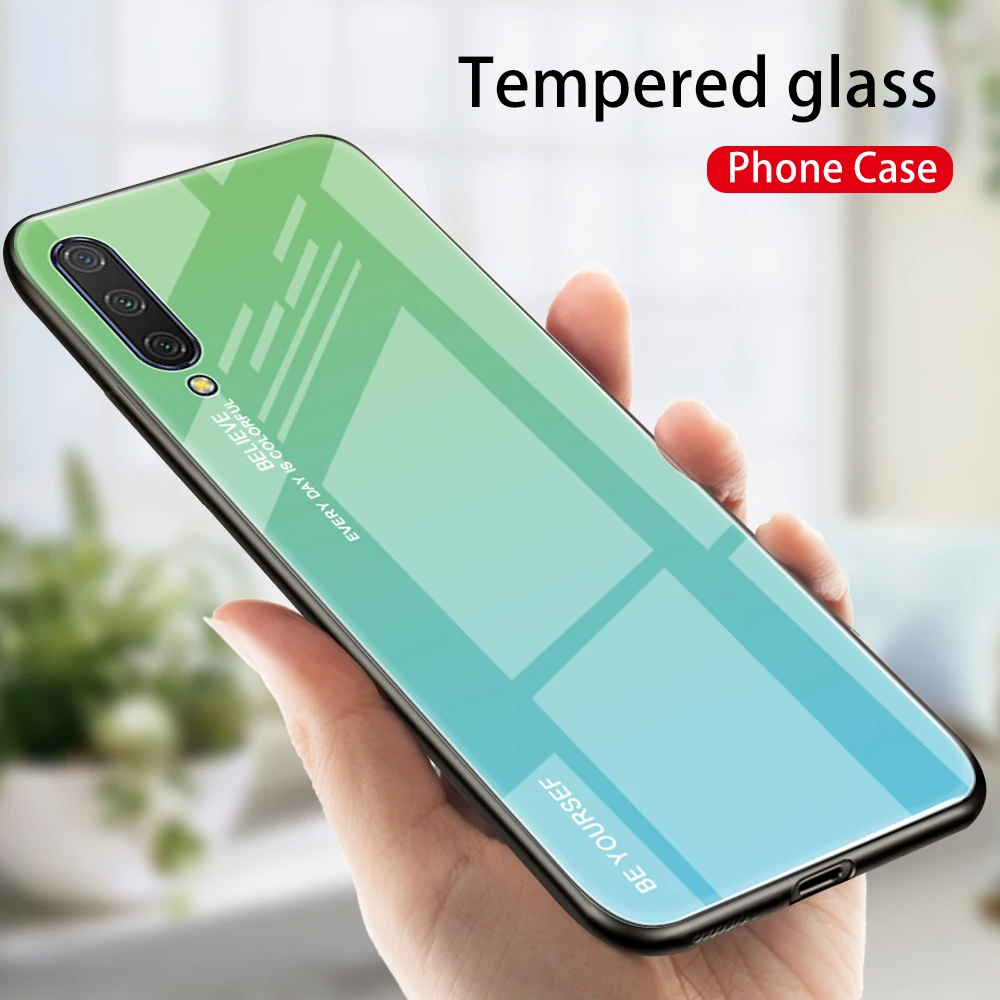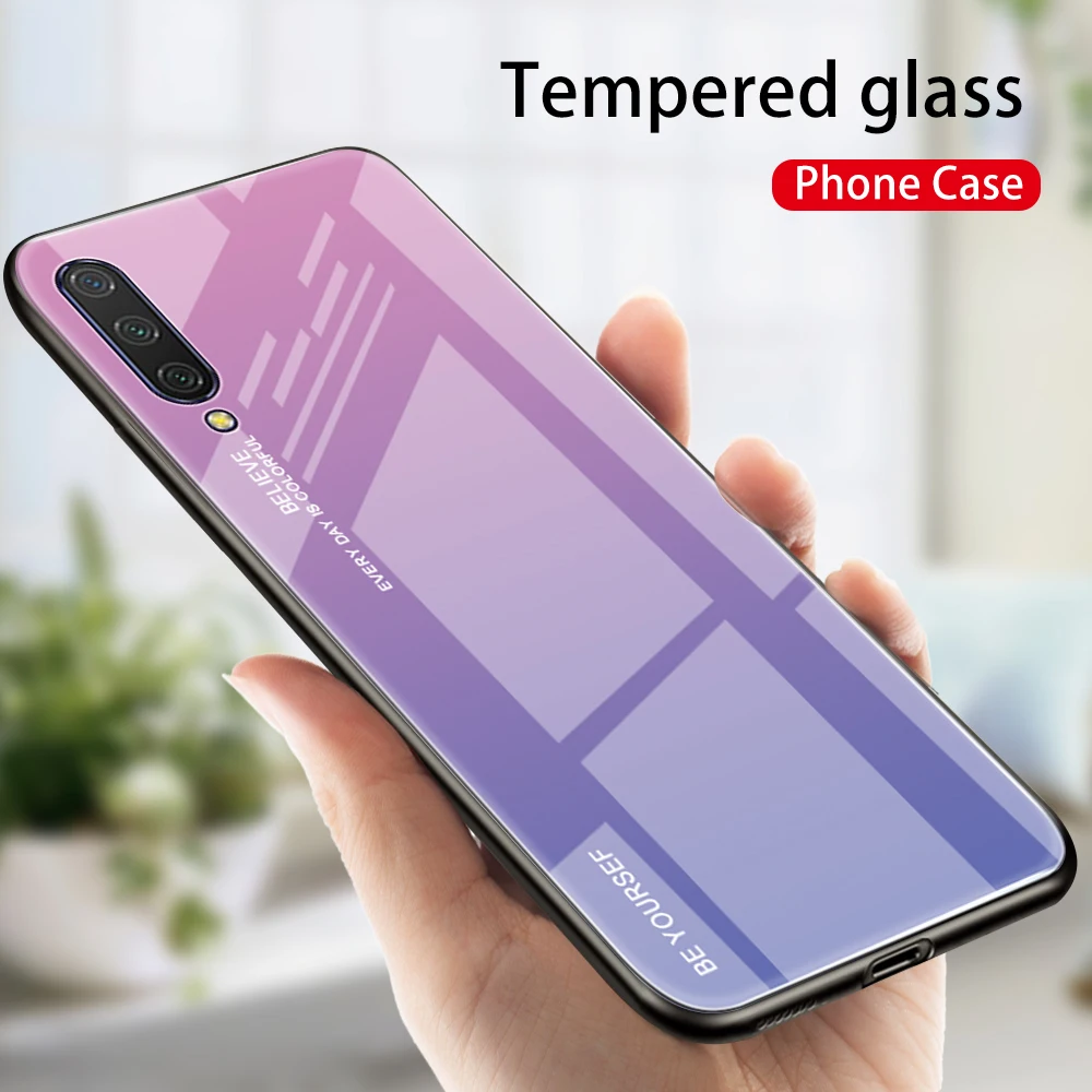 Чехол для Xiaomi Mi A3, жесткое закаленное стекло, модный градиентн...