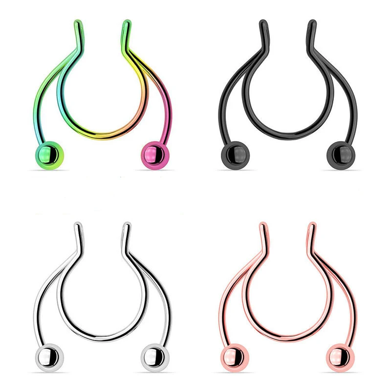 Магнитный поддельный пирсинг панк готическое кольцо-кафф для носа из нержавеющей стали пирсинг кольцо перегородка кольца для мужчин и женщин Готическая серьга в нос