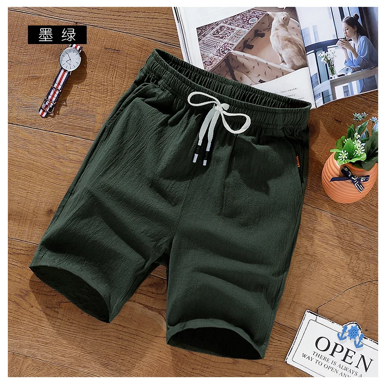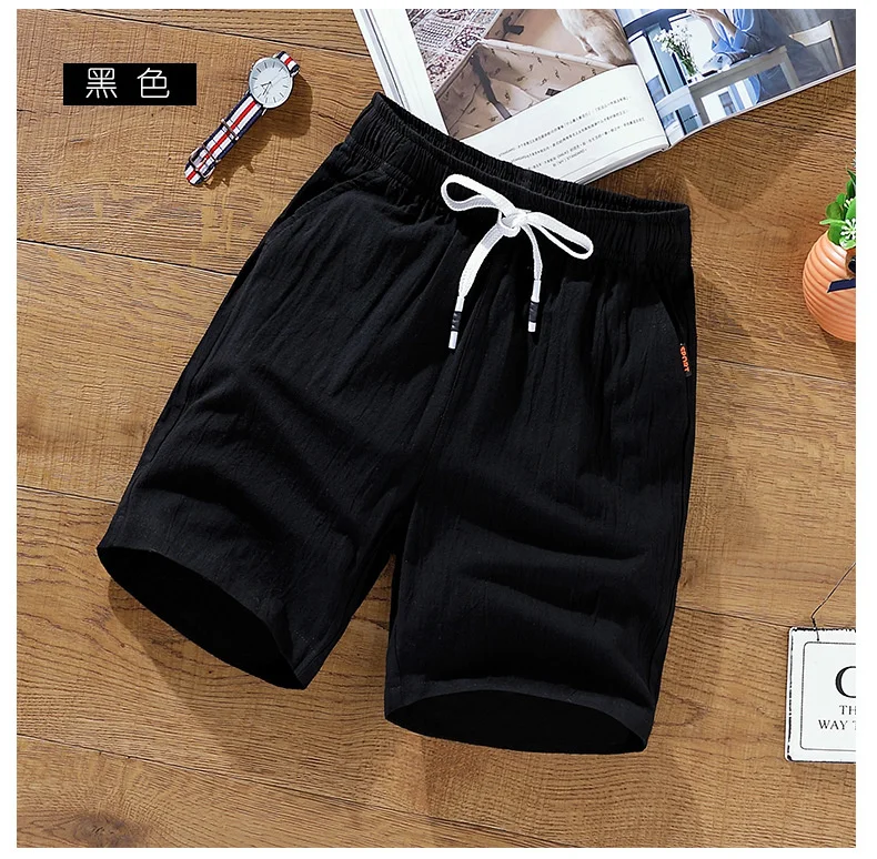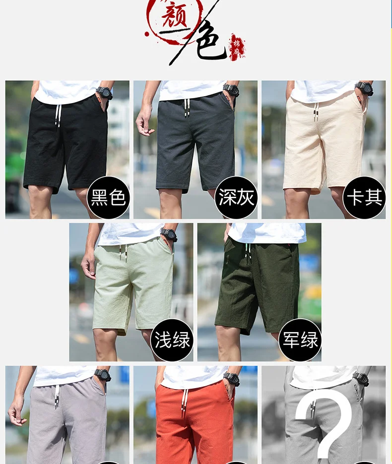 Шорты мужские однотонные, льняные короткие брюки, дышащие повседнев...
