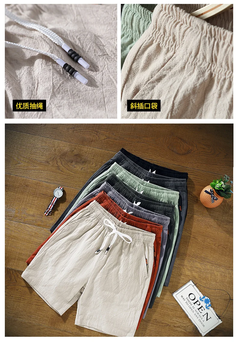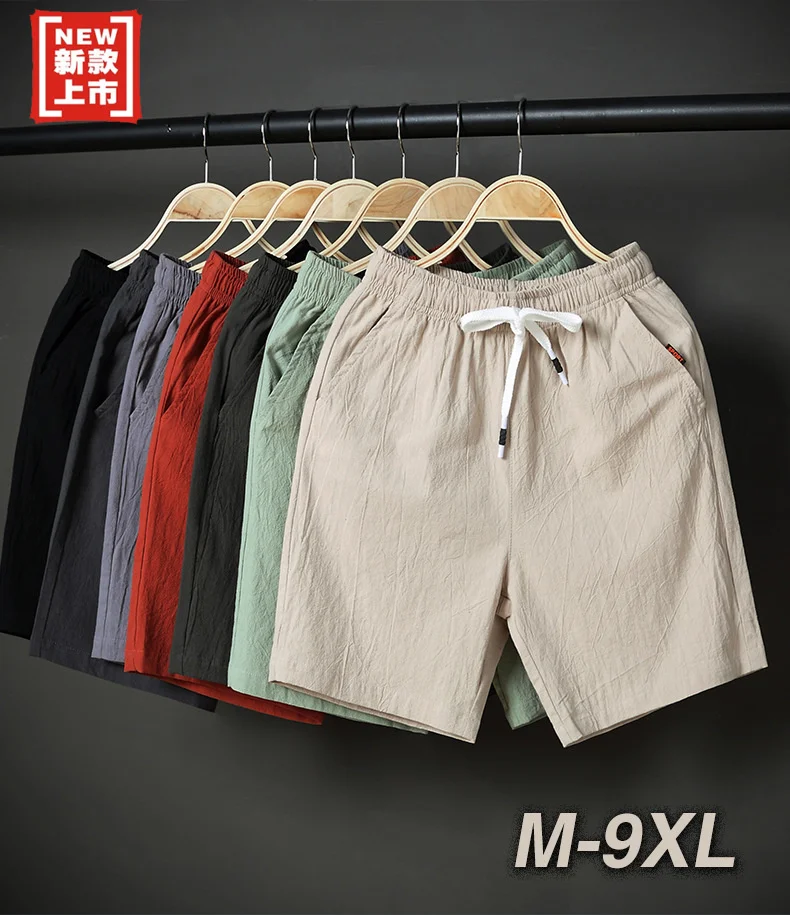 Шорты мужские однотонные льняные, повседневные короткие брюки, дышащие, летние, размеры 7XL 8XL 9XL, 2021