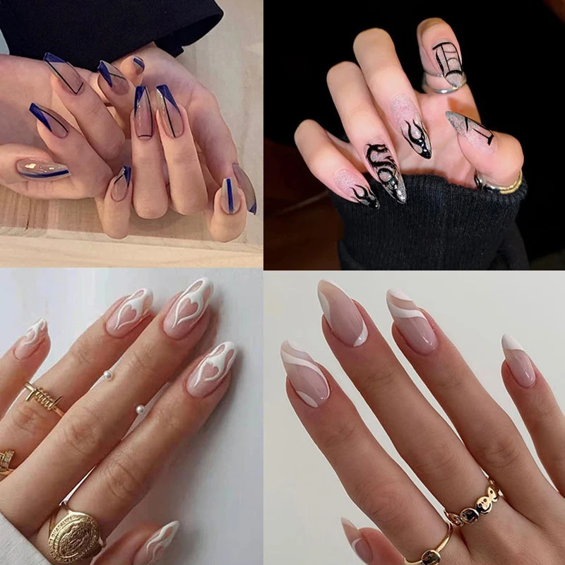24 шт.компл. Геометрические линии дизайна накладных ногтей длинный ...