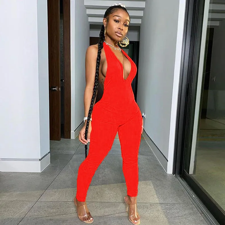 Сексуальный комбинезон QuanRun с глубоким V-образным вырезом, без р...
