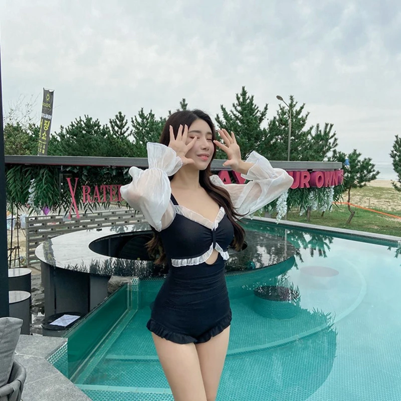 Женское Монокини, Цельный купальник с длинными рукавами-фонариками,...