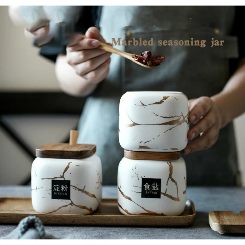 Керамическая емкость для приправ в скандинавском стиле с мраморным ...