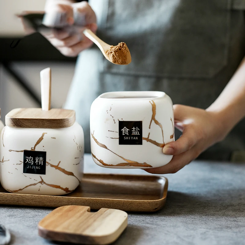 Набор керамических емкостей для приправ, роскошный набор в скандина...