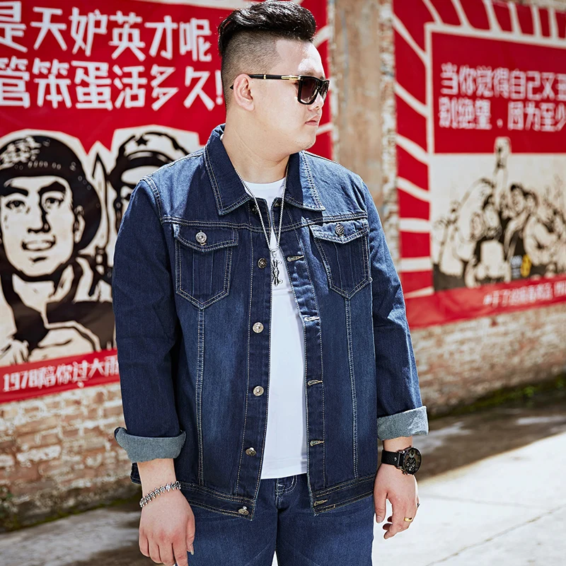 Брендовая мужская джинсовая куртка больших размеров 6XL, 7XL, 8XL, темно-синяя модная повседневная классическая весенне-осенняя куртка с несколькими карманами, мужская одежда
