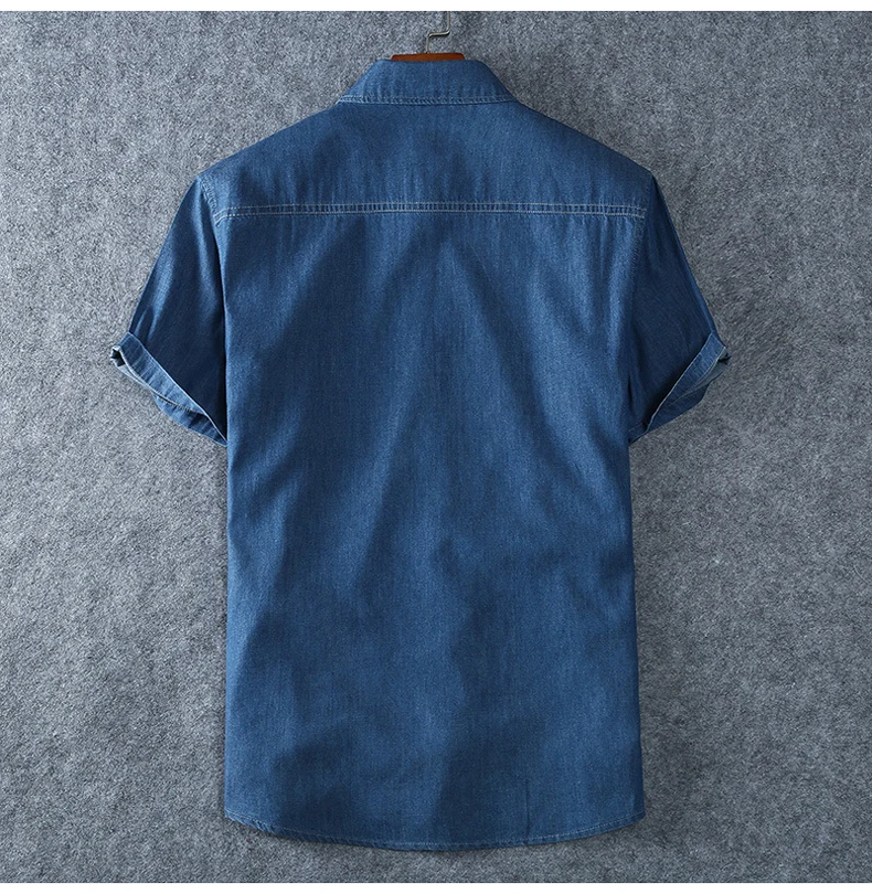Рубашка мужская джинсовая с короткими рукавами, Модная тонкая одноб...