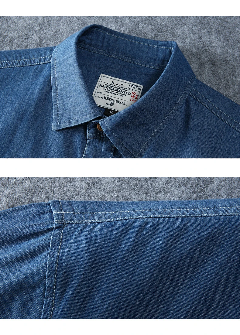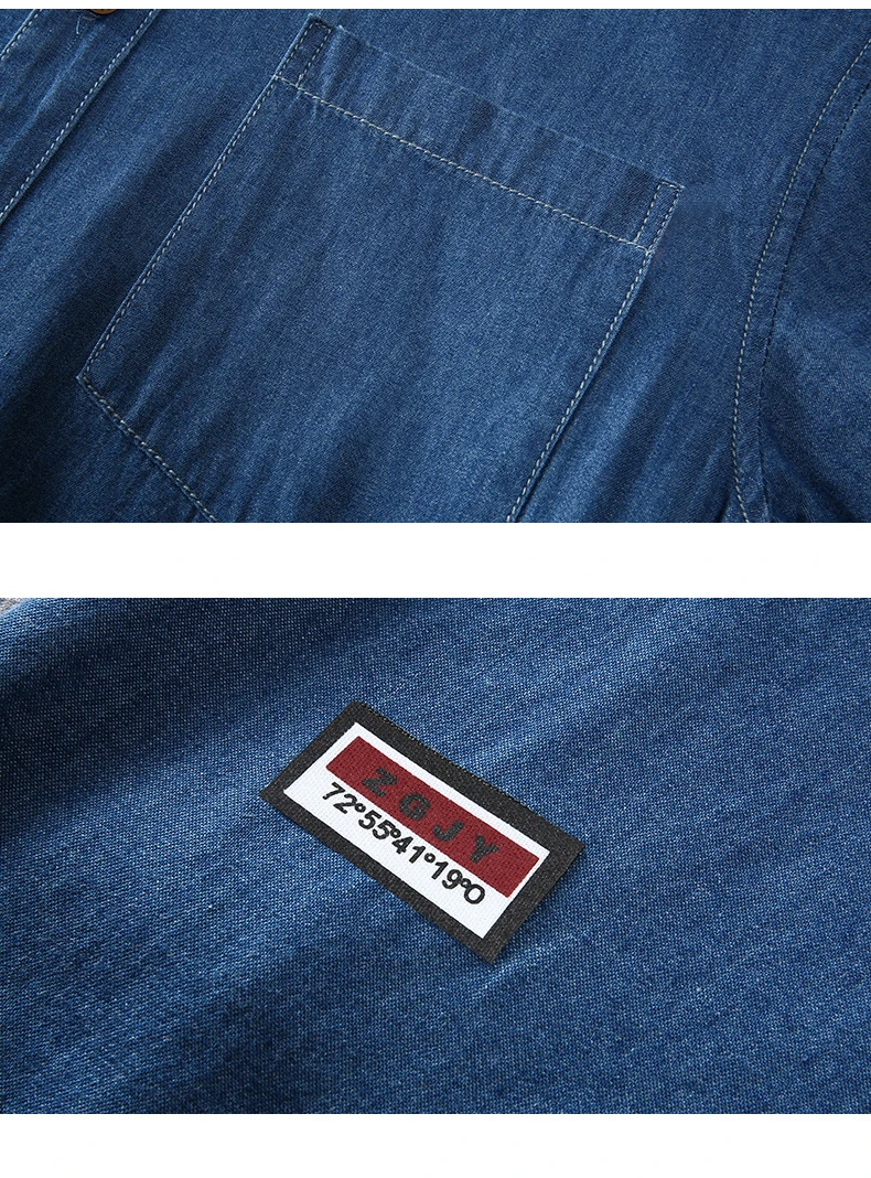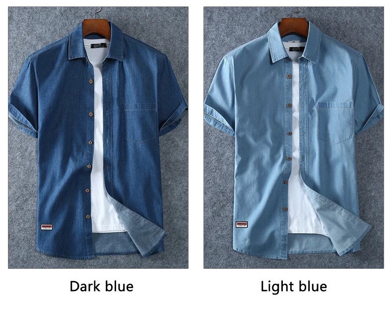 Мужская джинсовая рубашка, голубая хлопковая рубашка с коротким рук...