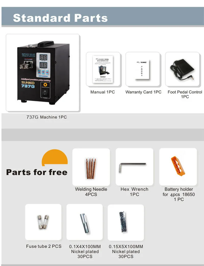 Аппарат для точечной сварки SUNKKO 737G 18650, литиевая батарея, кВт, светодиодный светильник, точечная сварка для точечной импульсной сварки