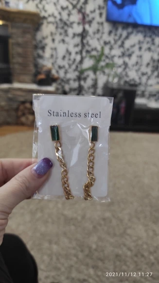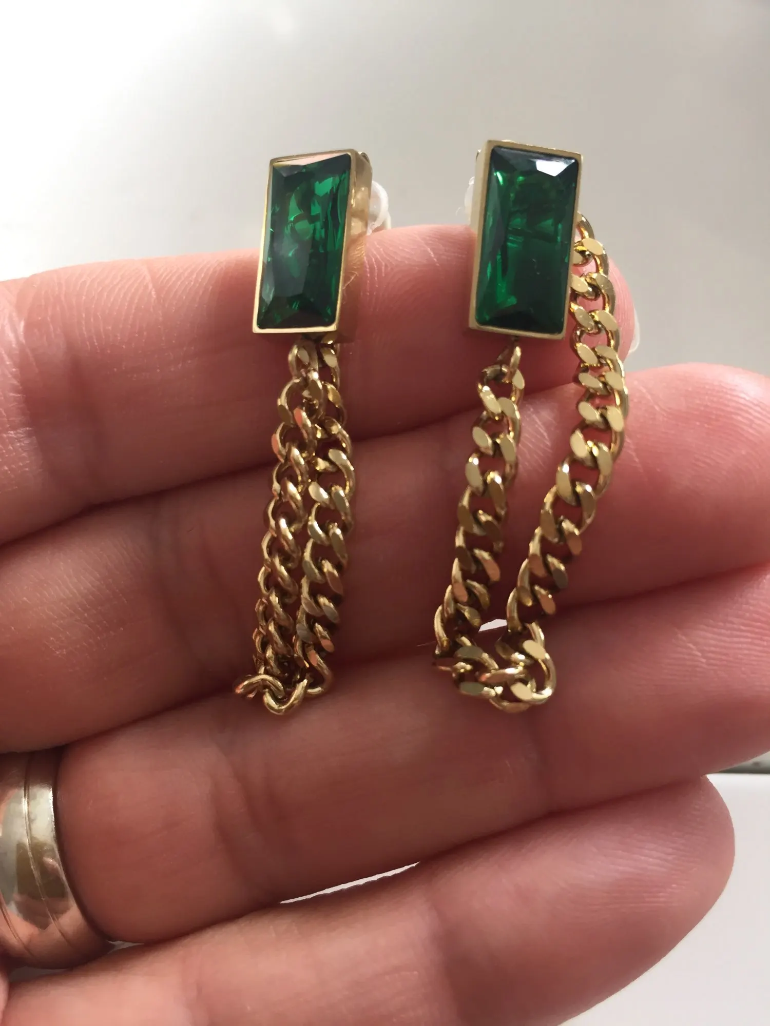 Женские серьги-подвески из нержавеющей стали с зеленым Цирконом