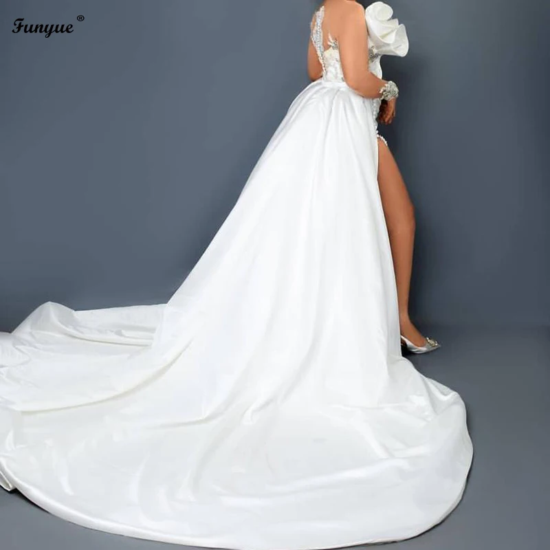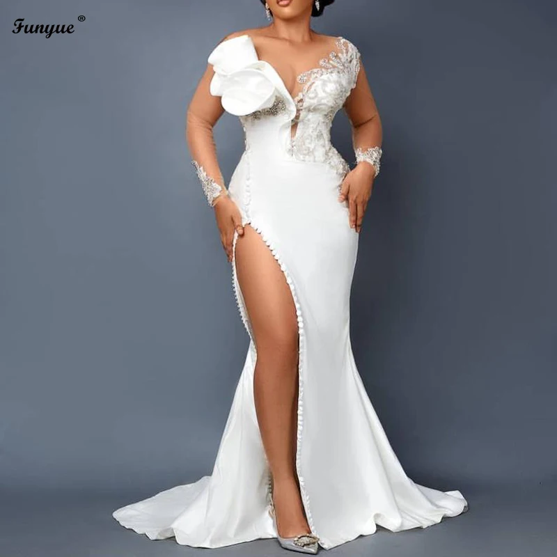 Женское атласное свадебное платье, с длинными рукавами и юбкой годе, цвета слоновой кости, 2021