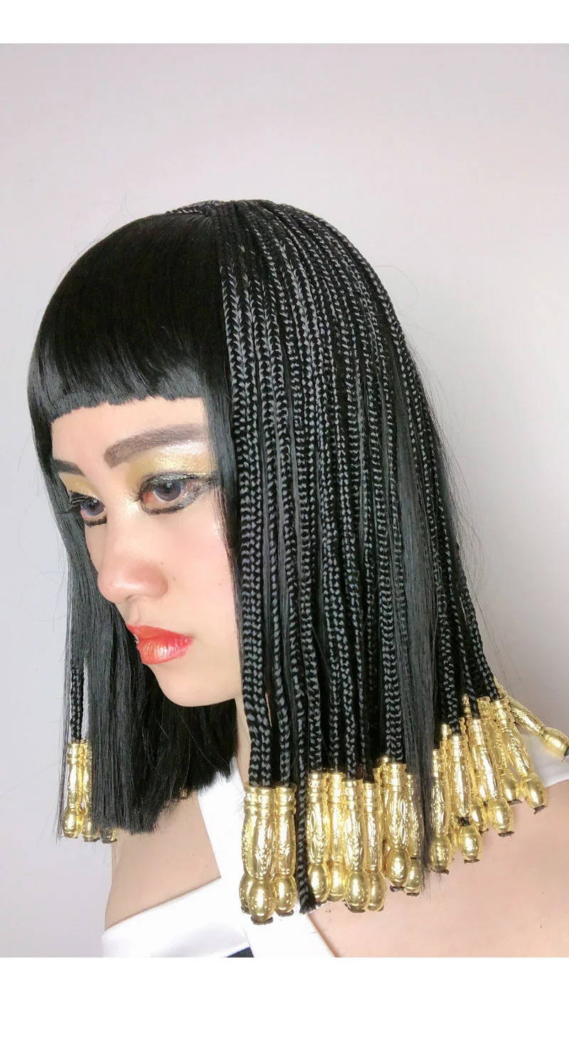 Термостойкие синтетические волосы с черными косами египетская Клеопатра парики для Хэллоуина вечеринки карнавала косплея + шапочка для парика