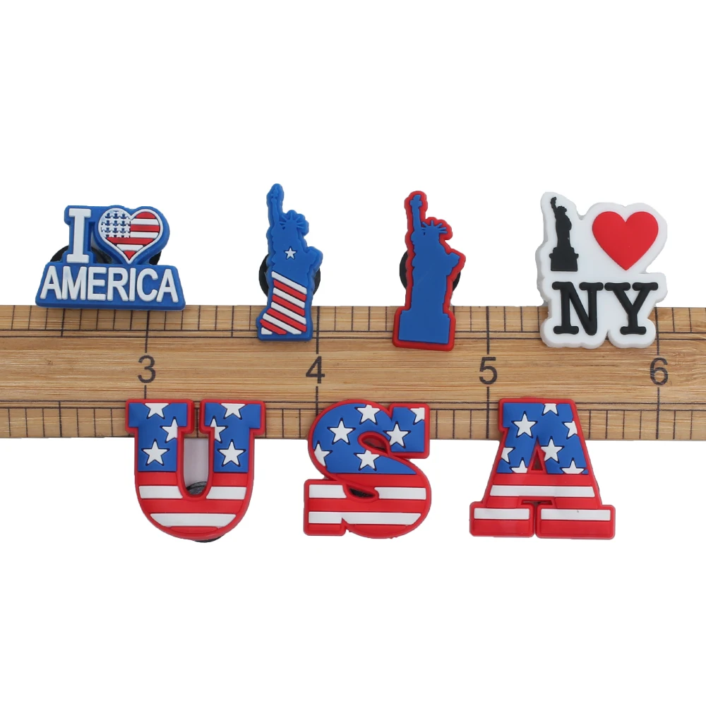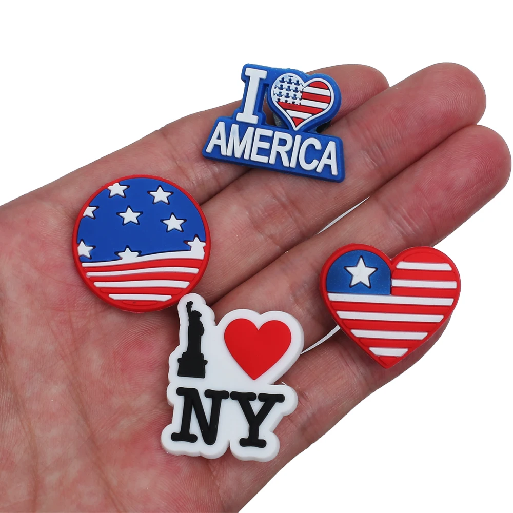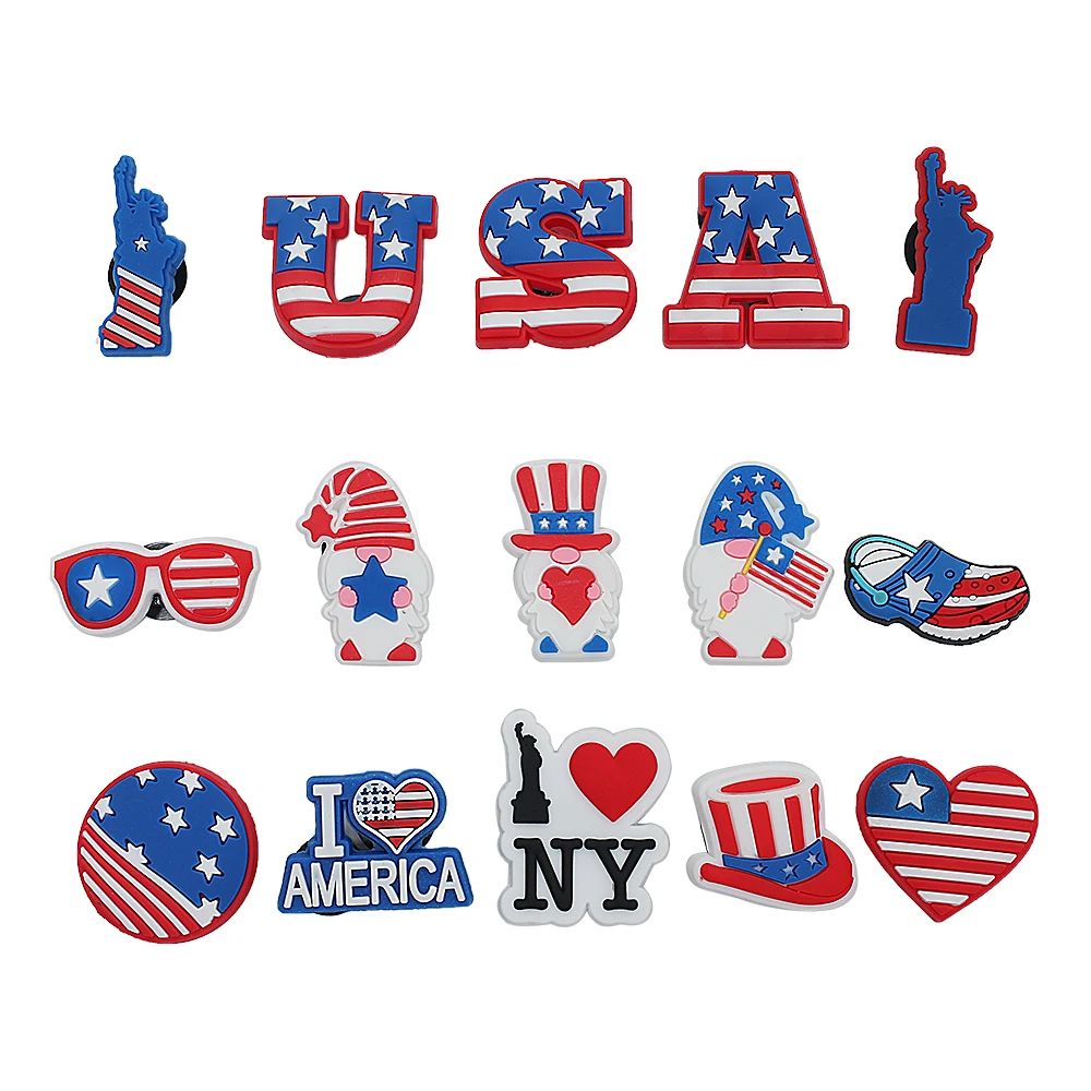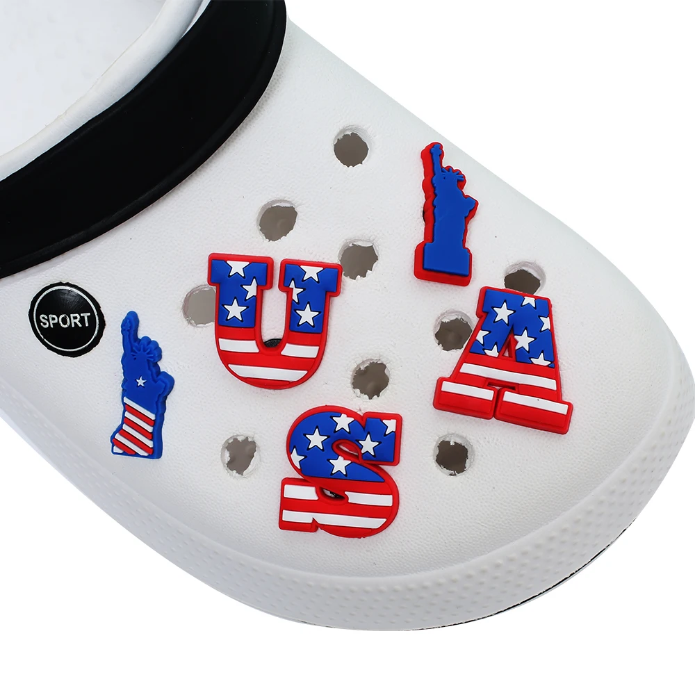 Одиночная распродажа, 1 шт., шармы для обуви на День Независимости, аксессуары для обуви, пряжки, браслеты, Croc JIBZ, подарок на Рождество для детской вечеринки