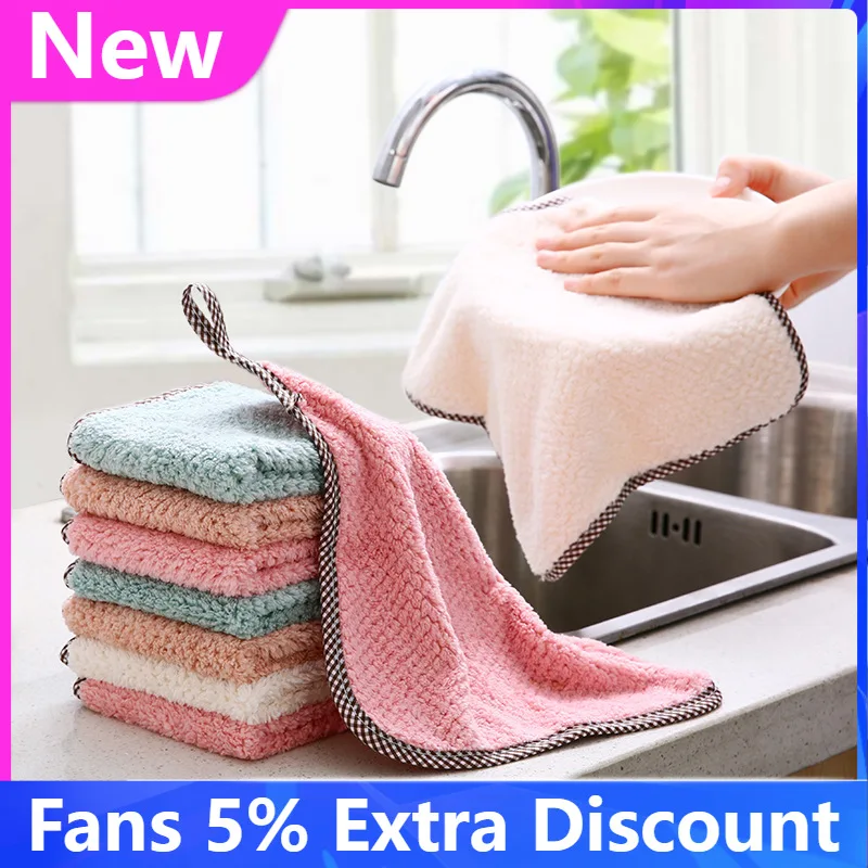 Новинка, супер впитывающая микрофибра для чистки кухни, тканевые вешалки из кораллового флиса, полотенце для посуды, Тряпичные принадлежности, гаджеты