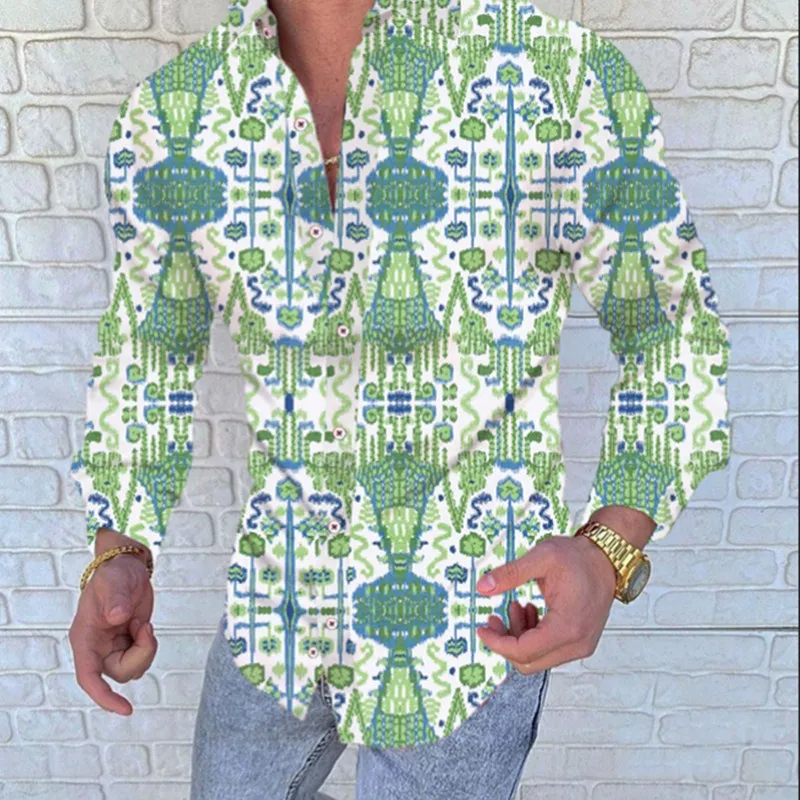 Мужская рубашка с длинным рукавом и принтом в виде карт