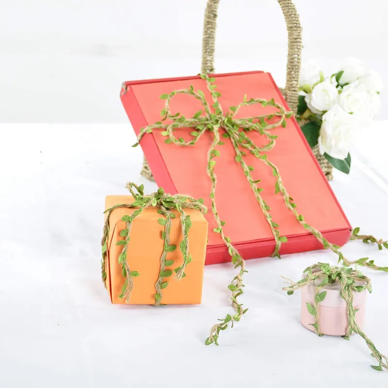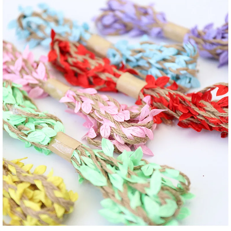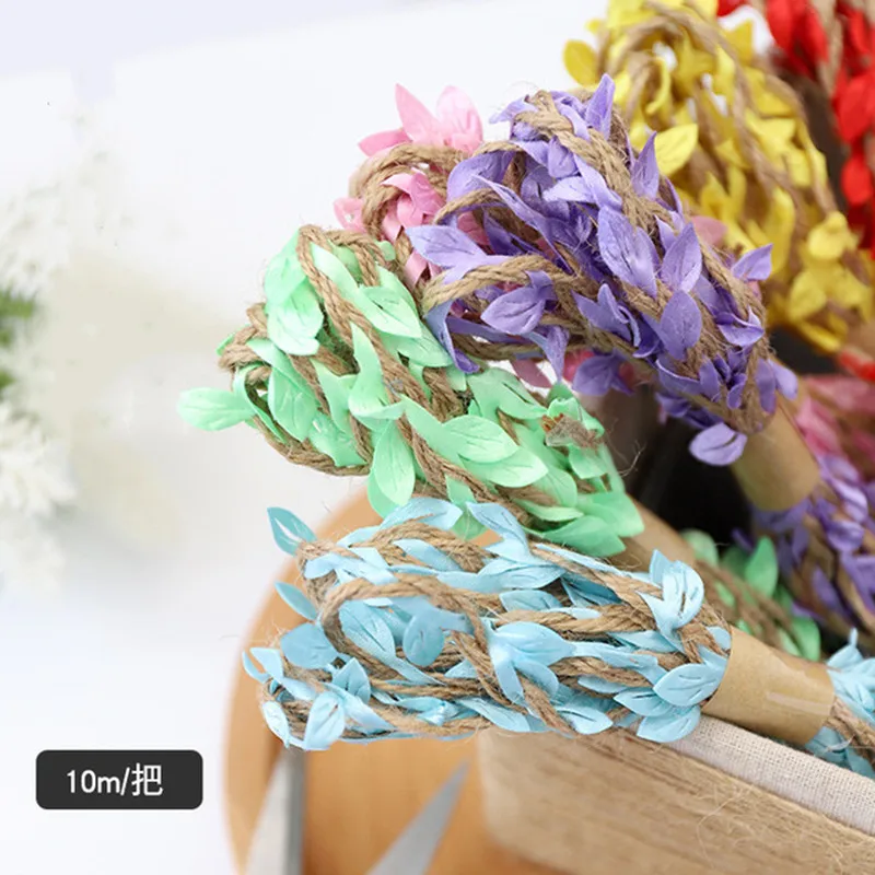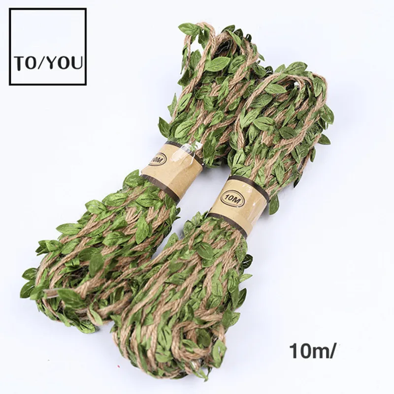 10 м зеленый лист ленточный канат джутовый лоза с искусственными листьями для декора детского душа Декор джунглей и сделай сам венок обертка ремесло