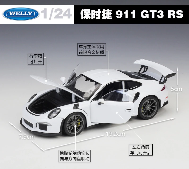 Модель автомобиля Welly в масштабе 1:24 Porsche 911 GT3 RS, металли...
