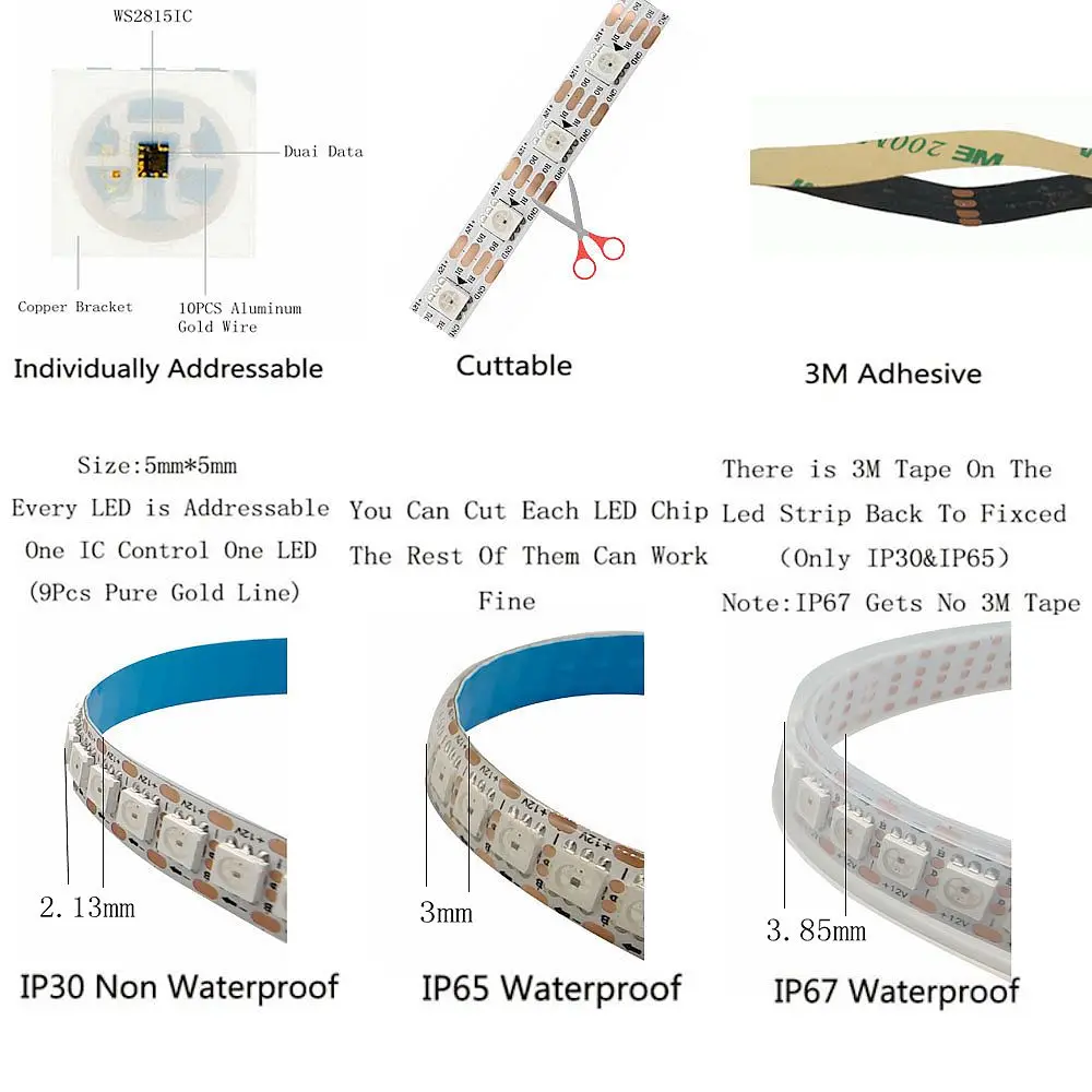 RGB Светодиодная лента WS2815 (WS2812B WS2813 обновленная) индивидуально адресусветодиодный Светодиодная лента с двойным сигналом, 12 В постоянного тока, водонепроницаемая