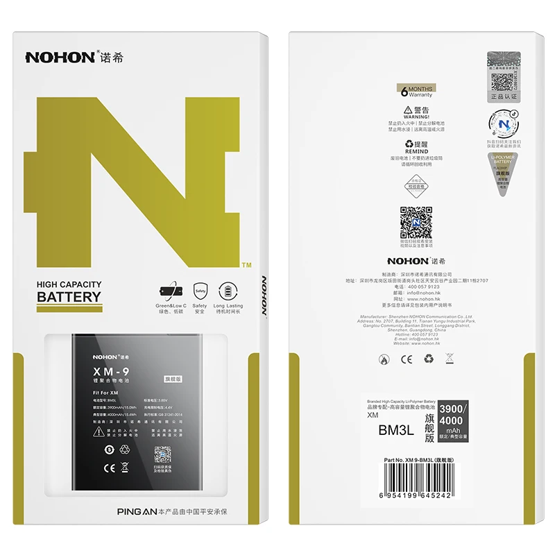 Аккумулятор Nohon BM3L для Xiaomi Mi 9 8 6 Max2 BM50 BM3M BM3E BM3K BN41 BN43 BM3A BM39 BN4A BN46 для Xiaomi Redmi Note 8 7 4 4A