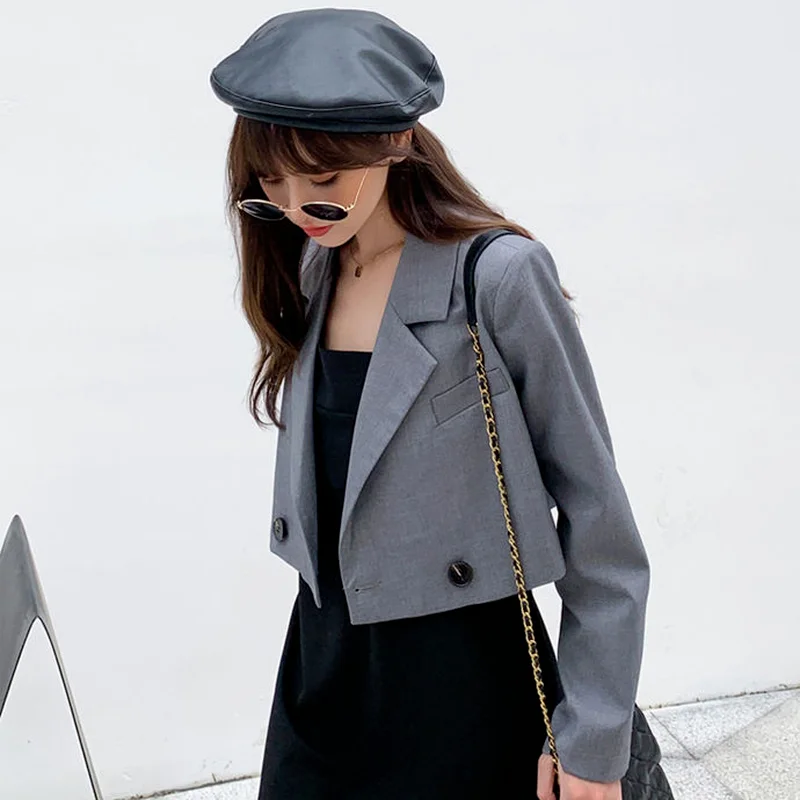 Блейзер женский с длинным рукавом, элегантный укороченный Винтажный стиль в стиле преппи, универсальная женская верхняя одежда, хипстерская одежда карамельных цветов для студентов