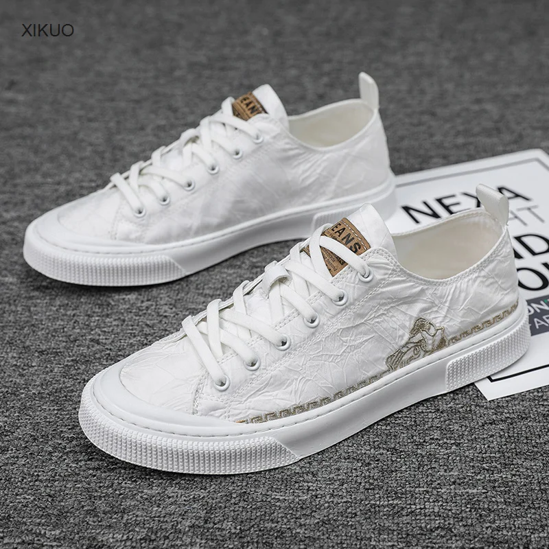 Мужская обувь, летние дышащие парусиновые туфли, мужские повседневные белые туфли