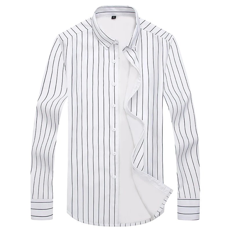 Мужская рубашка с длинным рукавом, осенне-зимняя деловая Повседневная приталенная рубашка из вельвета, плотная, теплая, в полоску, 2021