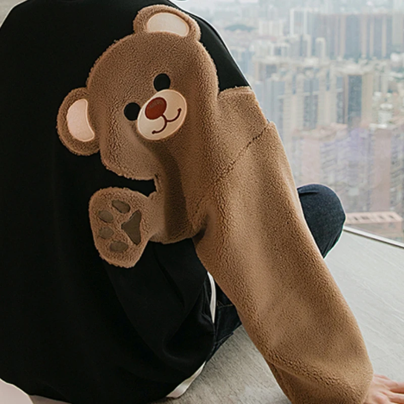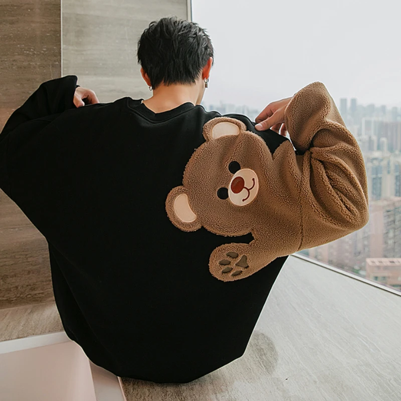 Мужской свитшот с плюшевым мишкой, толстый черный пуловер с круглым...