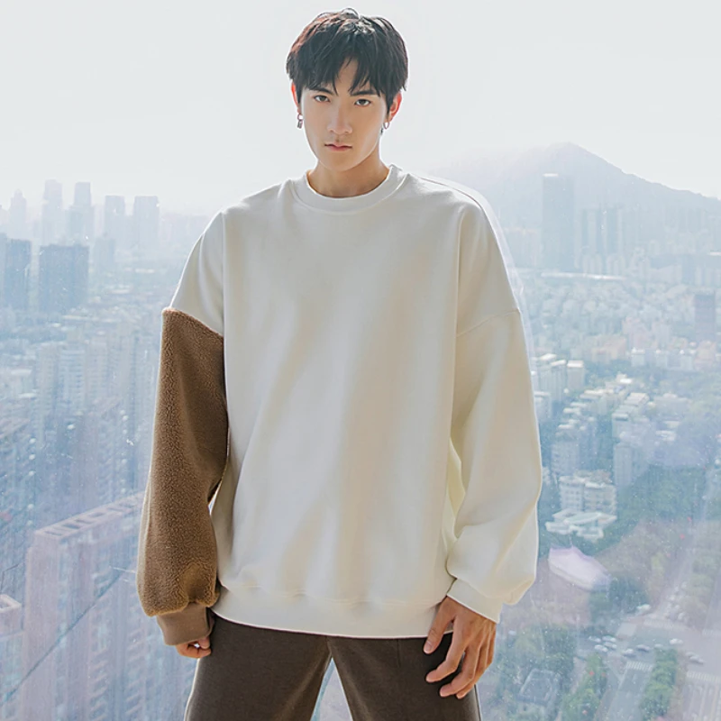 Толстовки без капюшона, мужские толстовки из овечьей шерсти с мультяшной вышивкой в стиле пэчворк, бархатные толстовки, универсальная уличная одежда в Корейском стиле