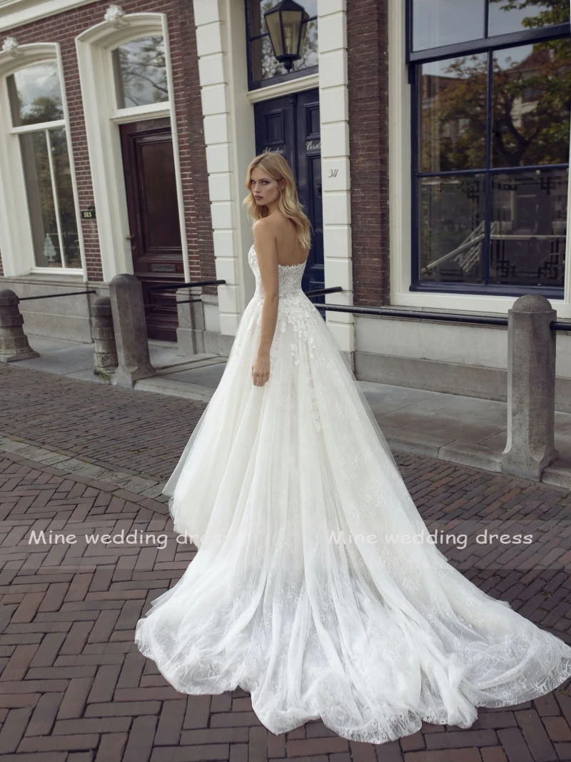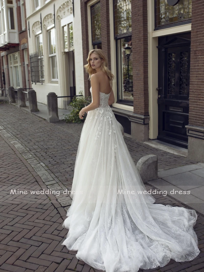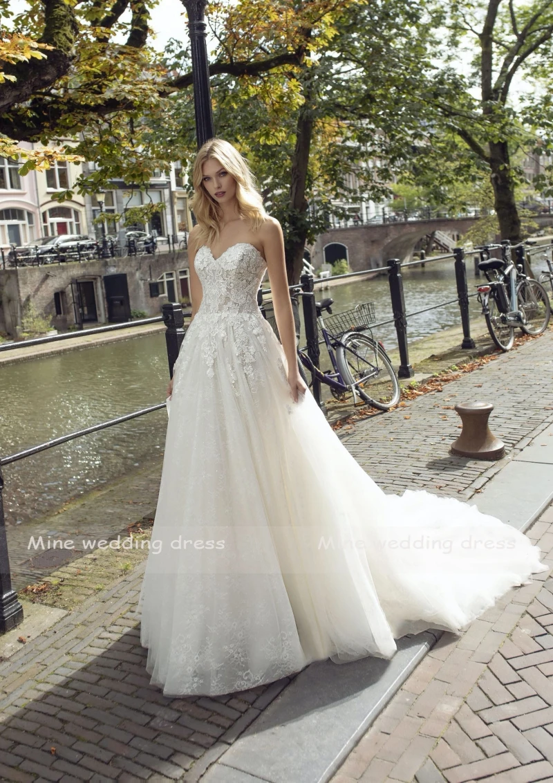 Соблазнительные трапециевидные Свадебные платья цвета шампанского с кружевной аппликацией, мягкие тюлевые свадебные платья, дешевое летнее платье 2022