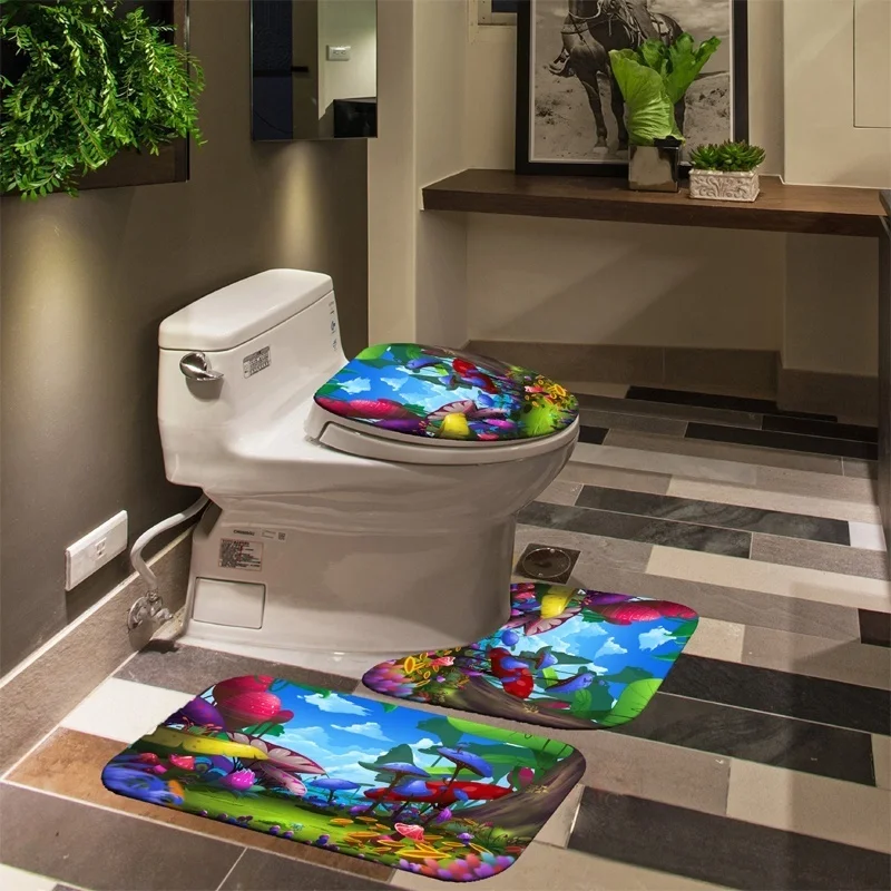 Фотообои для душа с нескользящими ковриками, крышка для унитаза и к...