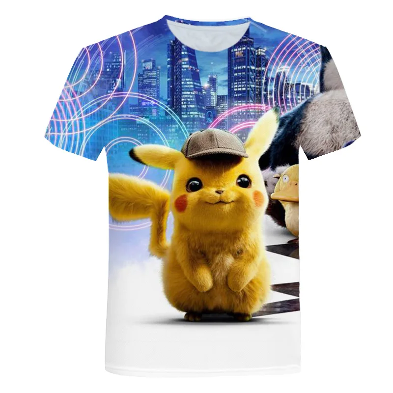 Детские футболки с персонажами из аниме Пикачу, 3D с короткими рука...
