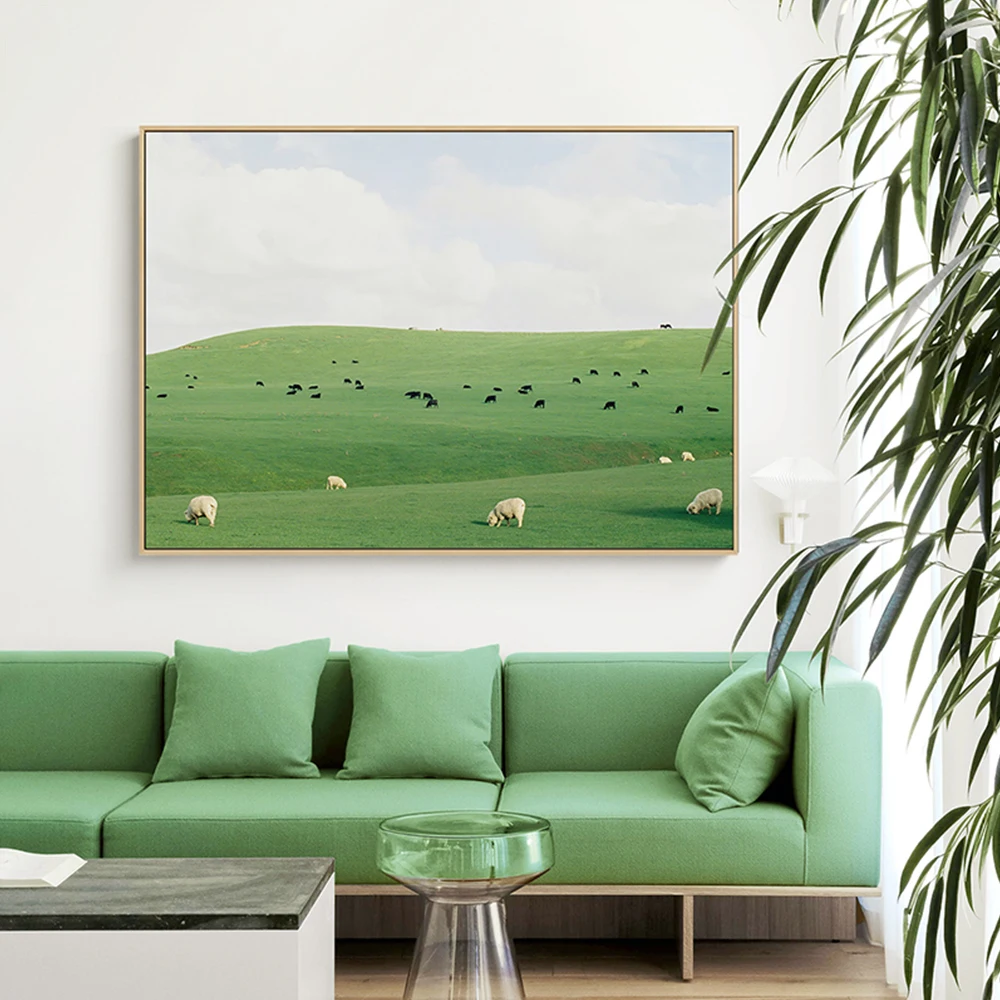 Постеры и принты зеленых абстрактных гор, живопись на холсте, насте...