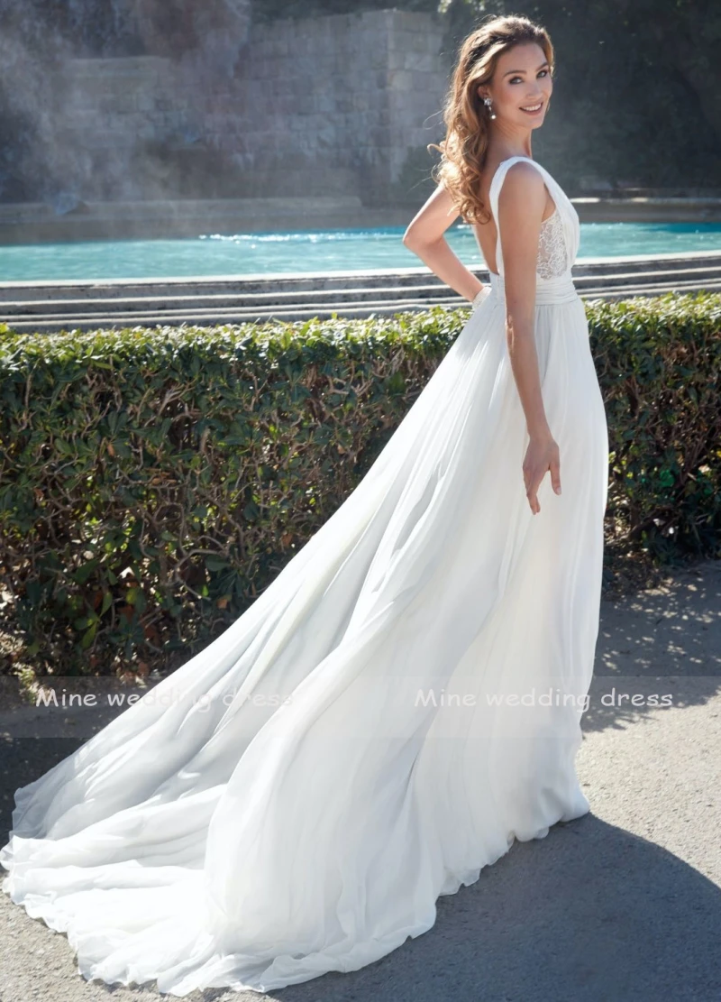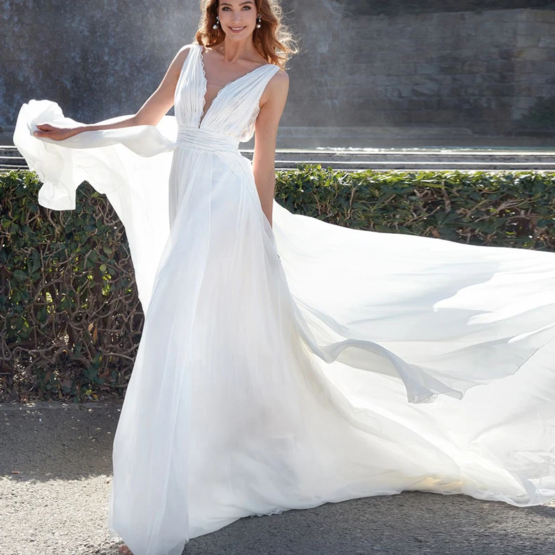 Богемное пляжное платье в стиле бохо 2021, простое свадебное платье с V-образным вырезом, ТРАПЕЦИЕВИДНОЕ шифоновое свадебное платье до пола