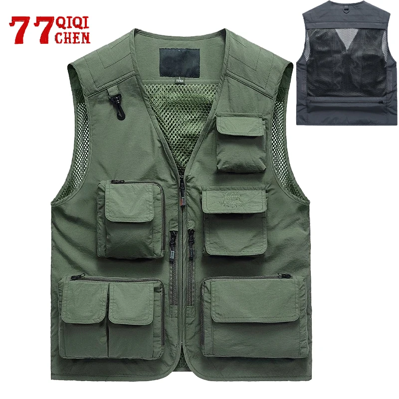 Жилет мужской сетчатый с несколькими карманами, летняя дышащая безрукавка размера плюс 7XL, жилет для фотосъемки, быстросохнущая брендовая одежда для рыбалки, Mascul