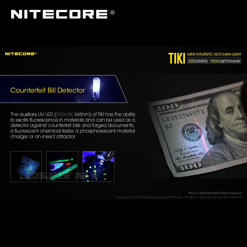 NITECORE бамбуковые УФ фонарик светильник 300Lumens Перезаряжаемые тройной Lihgt источников ультра светильник вес Водонепроницаемый брелок Светильник походный светильник