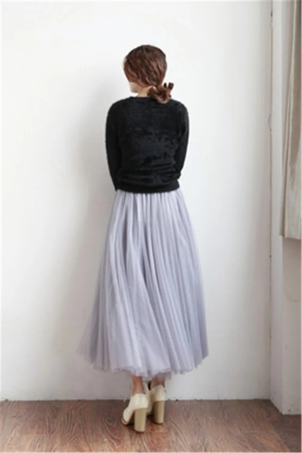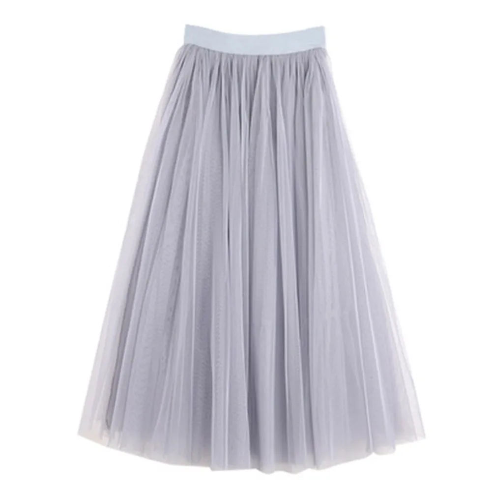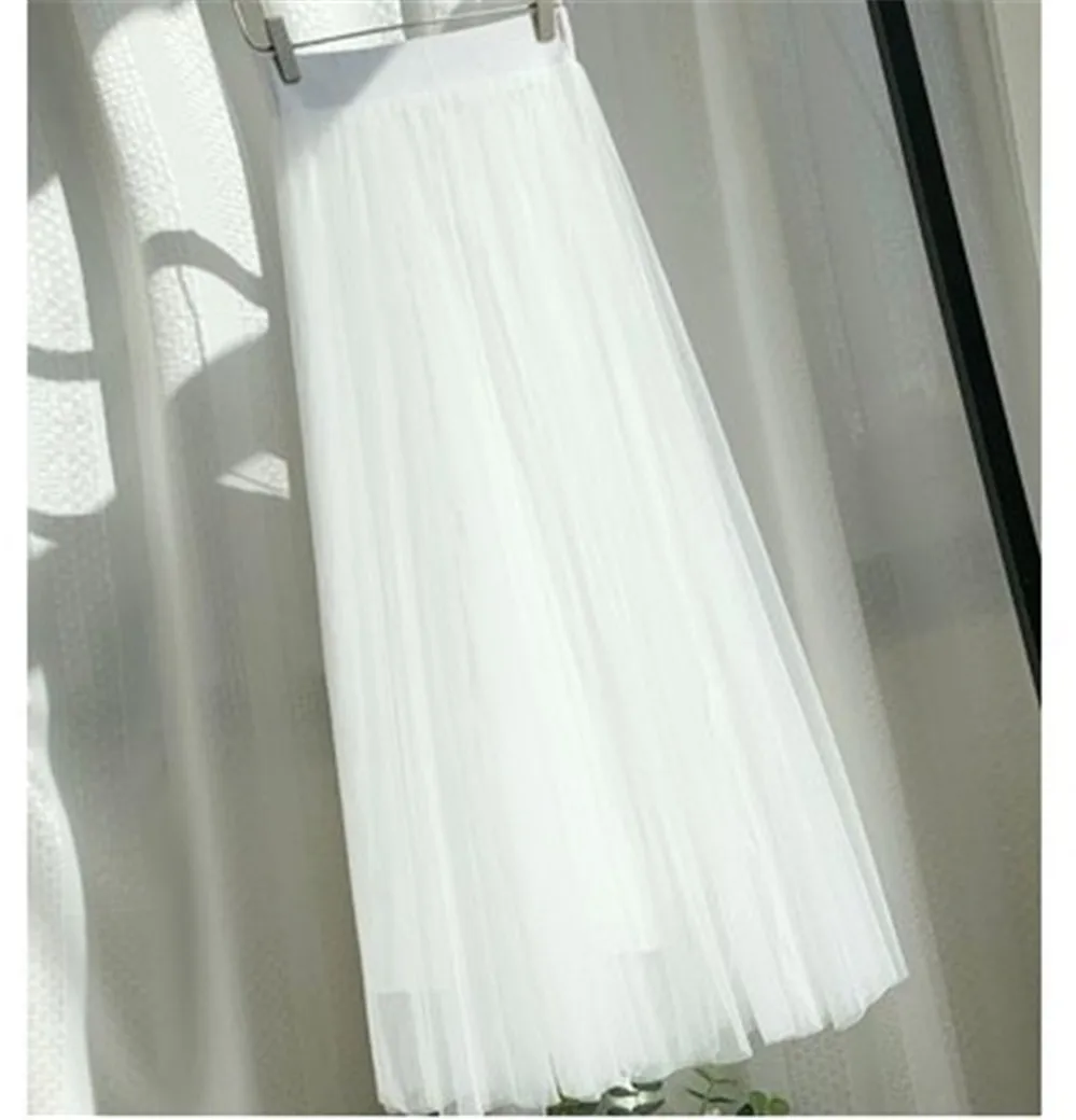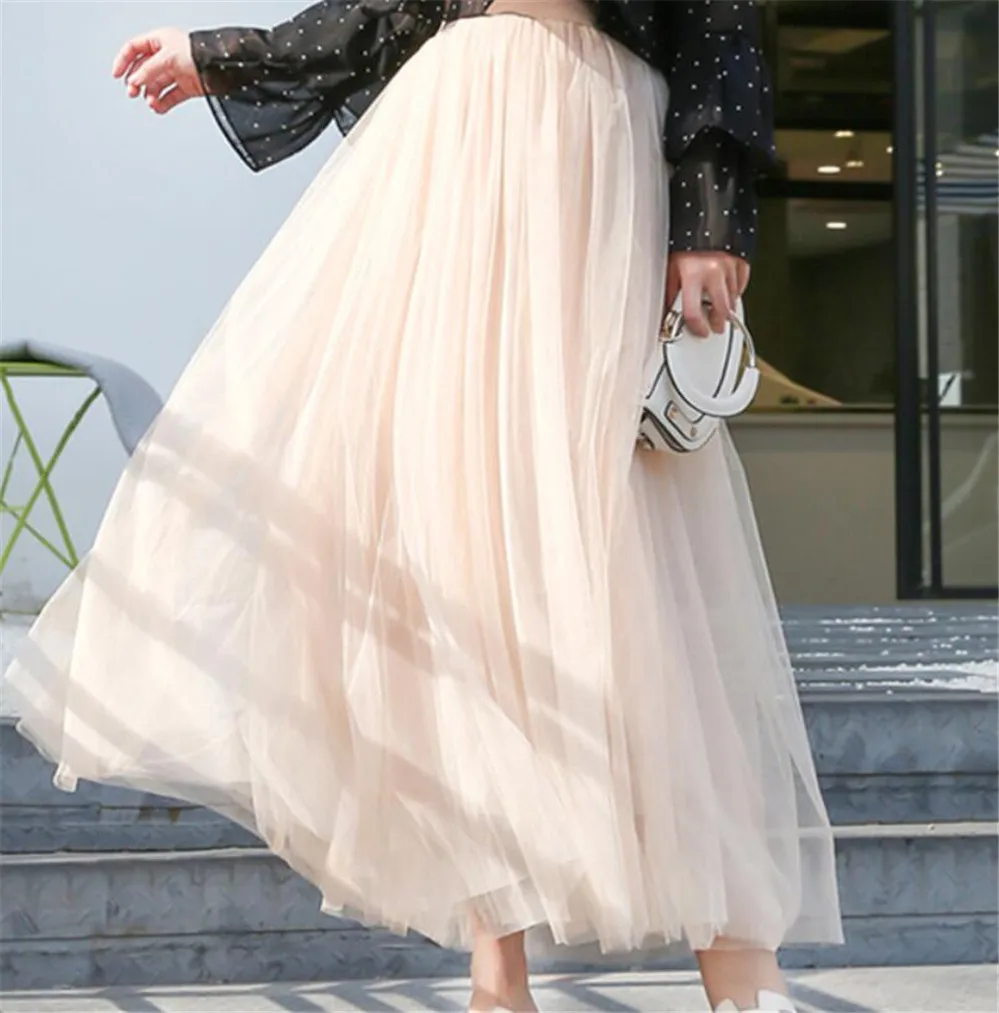 Винтажная Тюлевая юбка, летние Бальные юбки, женские Многослойные тюлевые плиссированные Ретро-юбки с высокой талией, длинная юбка-пачка