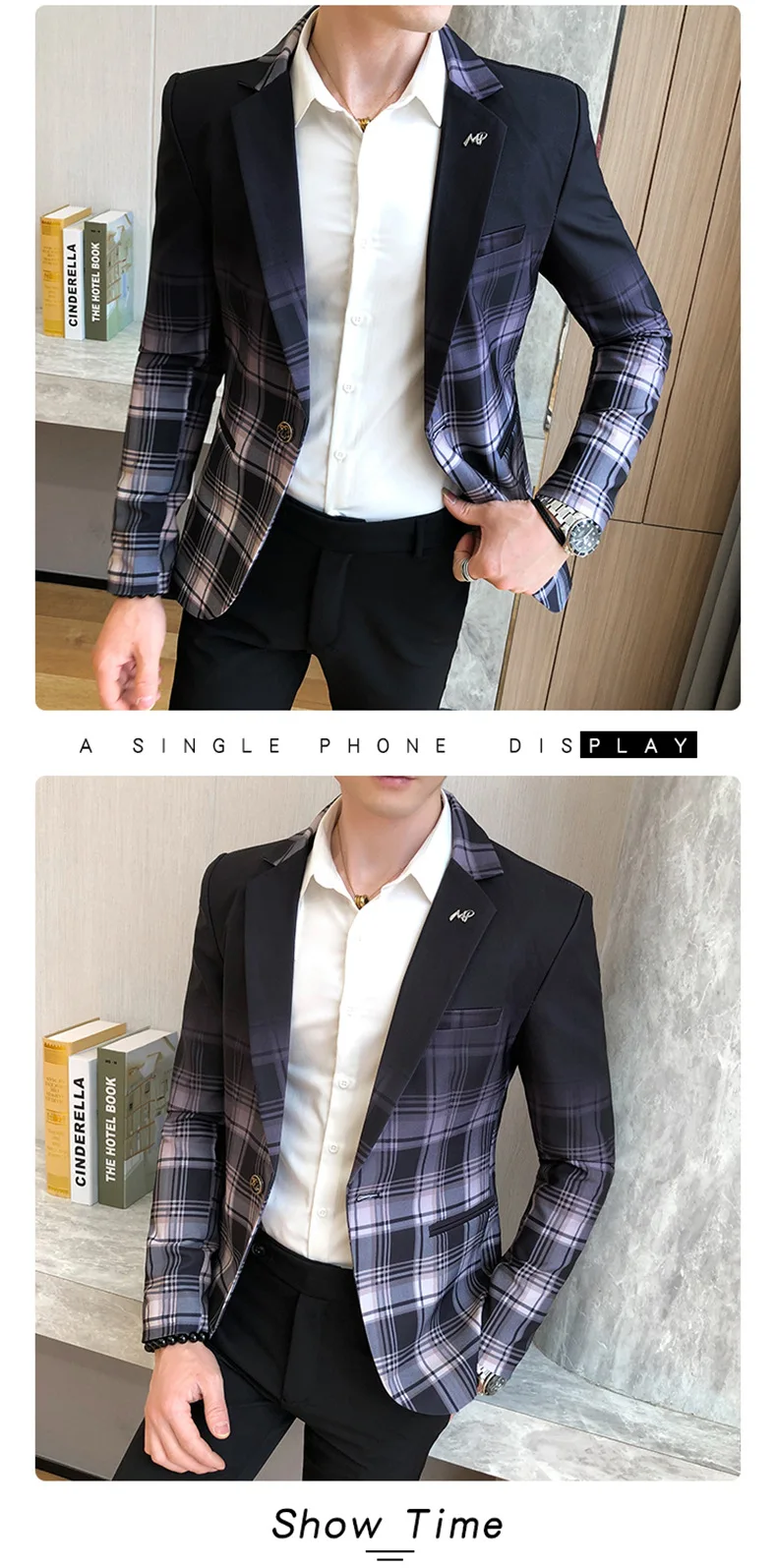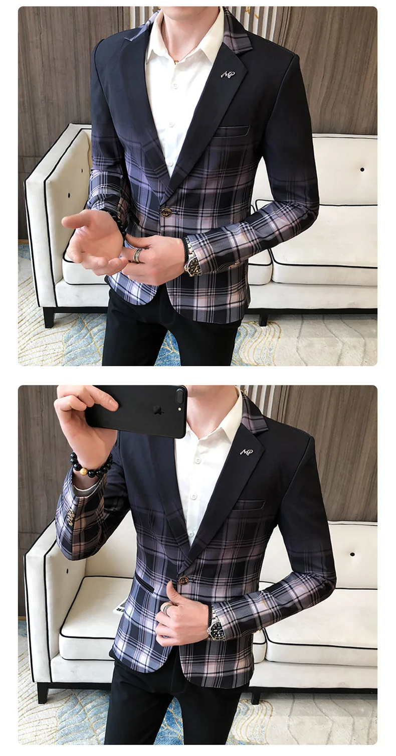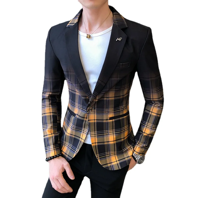 Новинка 2021, Модный повседневный маленький костюм, мужская куртка в Корейском стиле, модный клетчатый Однотонный мужской костюм в западном стиле, куртка, винтажная одежда